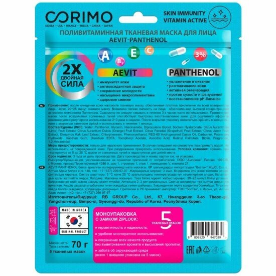 Купить Corimo Маска тканевая для лица AEVIT-PANTHENOL Поливитаминная 5штук