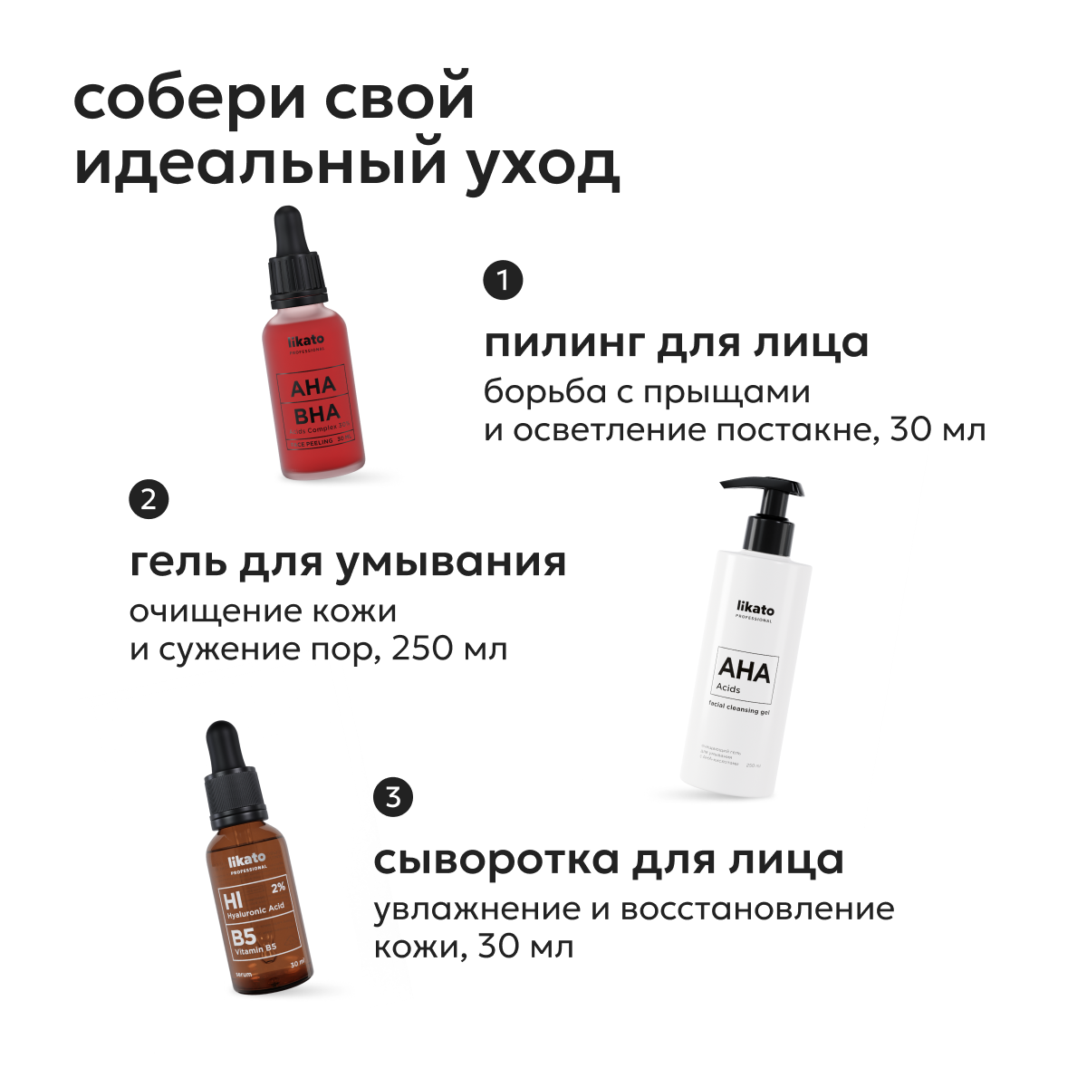 | Состав | Likato Мультикислотный пилинг для лица с AHA+BHA 30%, 30 мл |