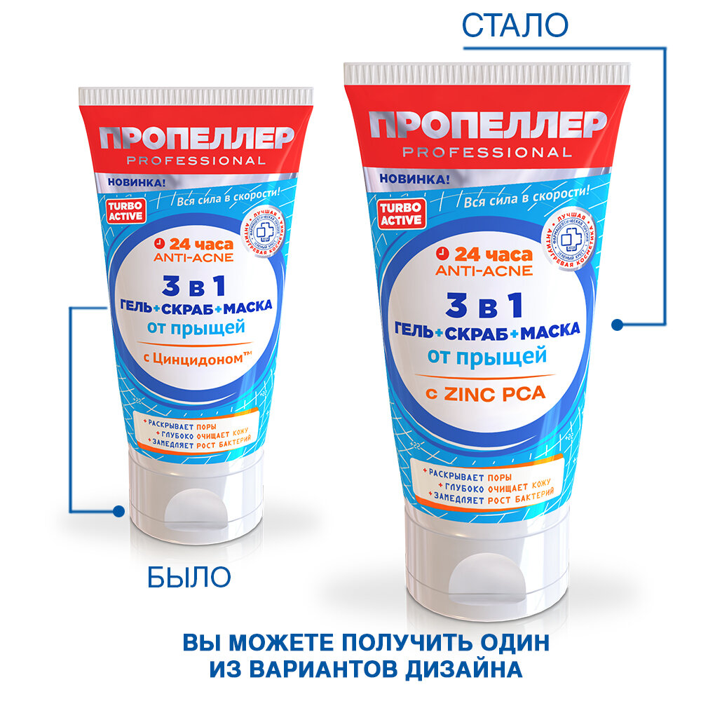 Пропеллер 3 в 1 Гель+Скраб+Маска от прыщей с цинцидоном, 150 мл интересное: