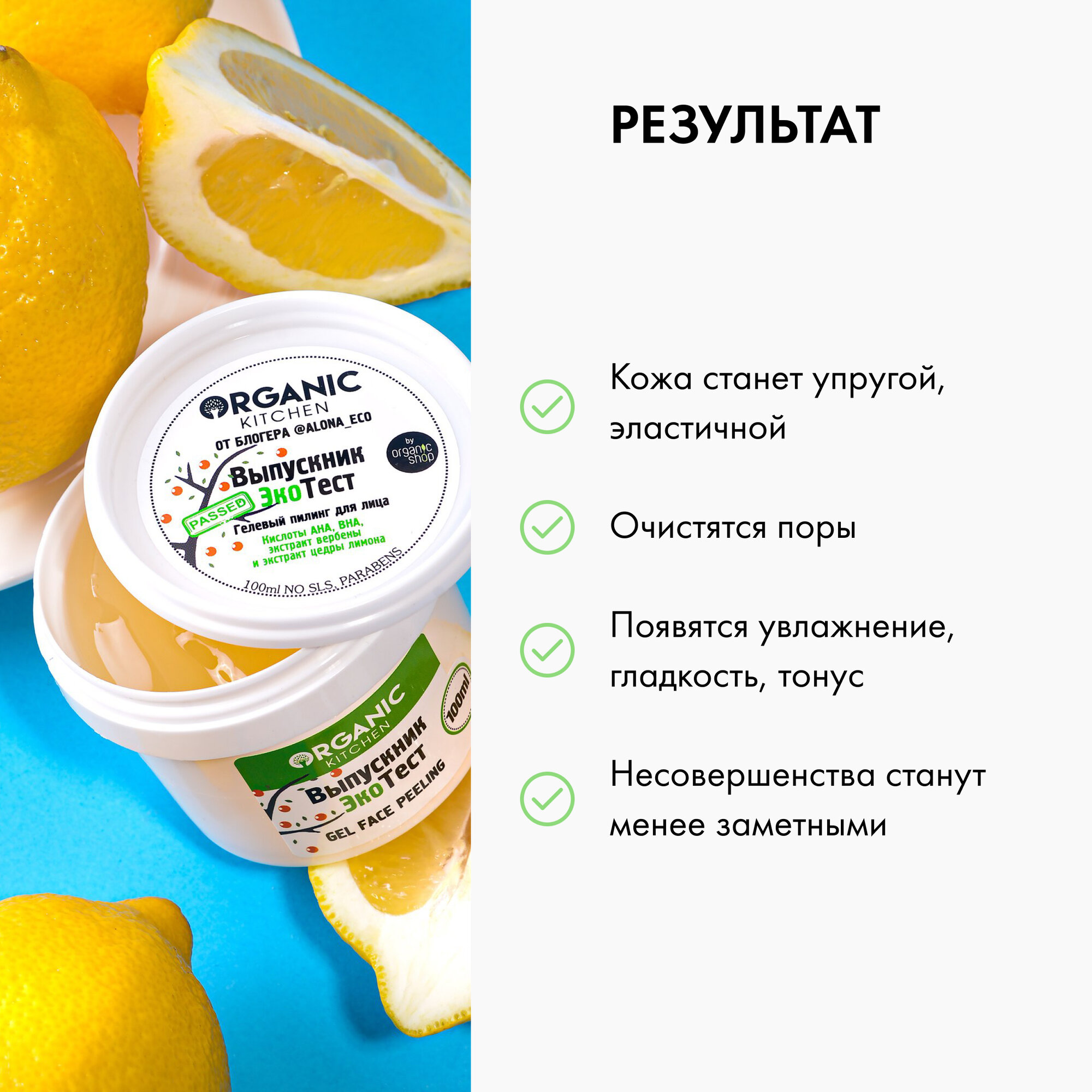 Гелевый пилинг для лица Organic Kitchen Блогеры от блогера Алена ЭКО "выпускник экотест",100 мл интересное: