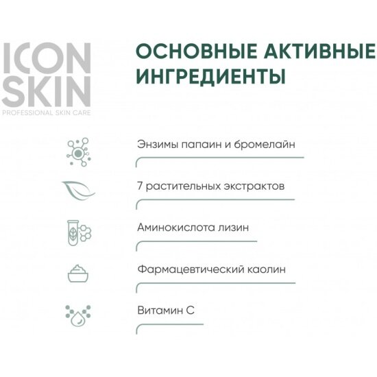 | Активный ингредиент | витамин C (аскорбиновая кислота) / гликолевая кислота / каолин / лизин / молочная кислота / пировиноградная кислота / фруктовые кислоты / энзимы |