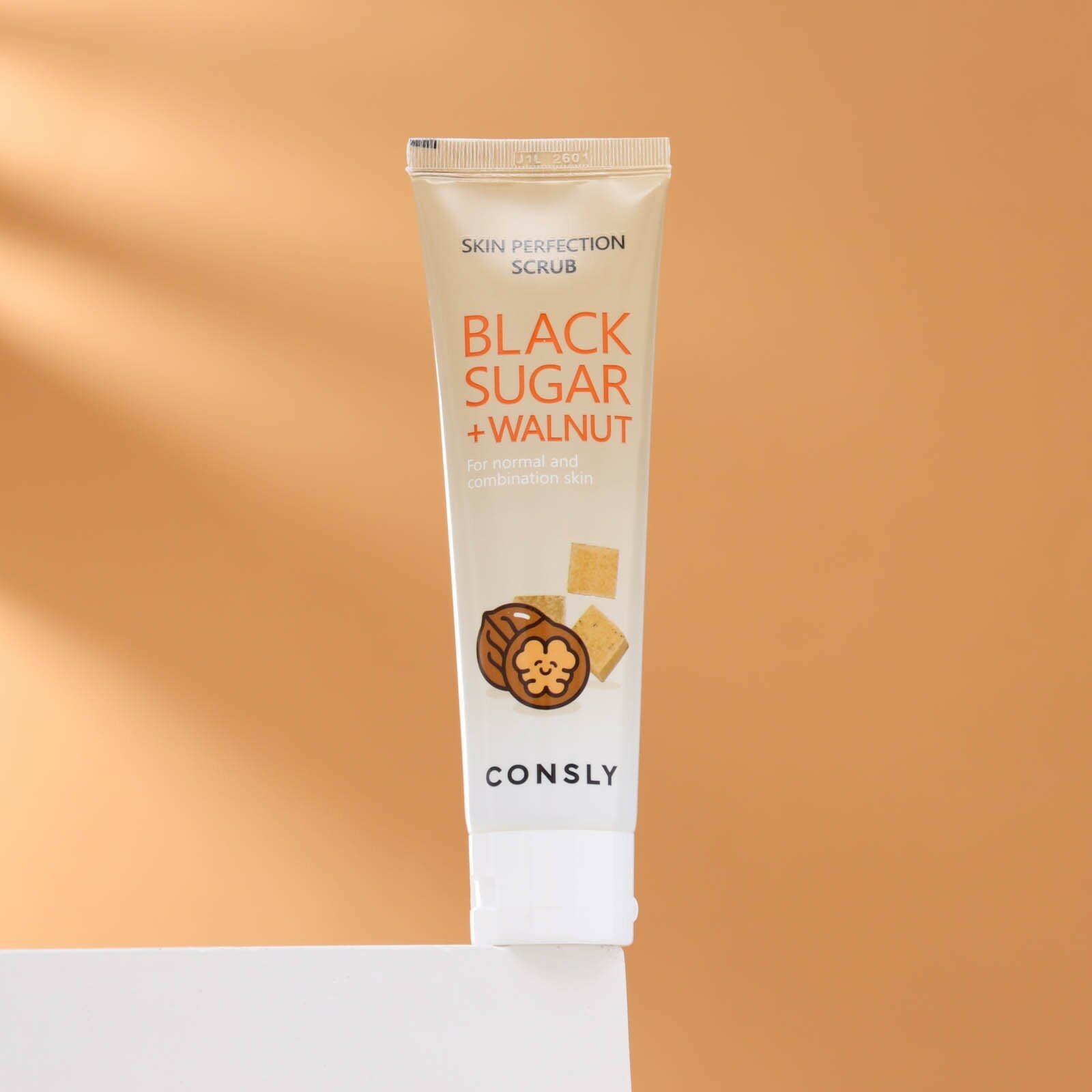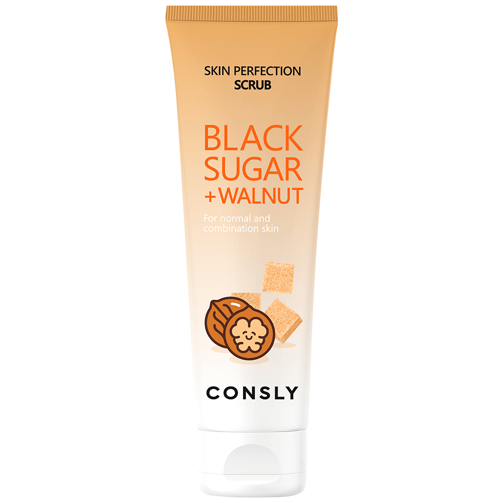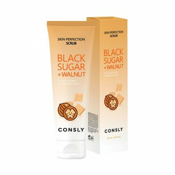 Consly Скраб : пилинг для очищения пор, для ухода за кожей лица, шеи и зоны декольте с черным сахаром и экстрактом грецкого ореха, корейская косметика. 120мл