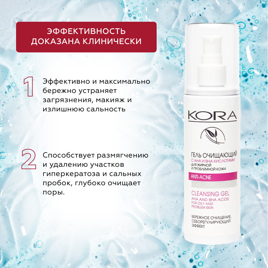 Гель очищающий с АНА и ВНА кислотами для жирной и проблемной кожи, марки KORA, 150 мл
