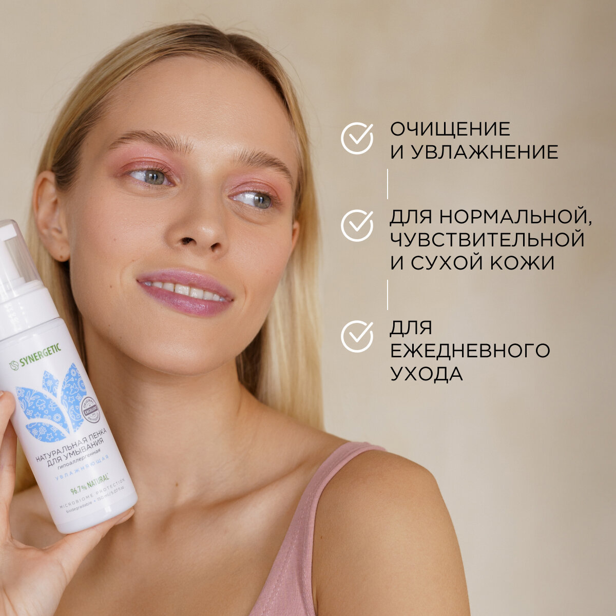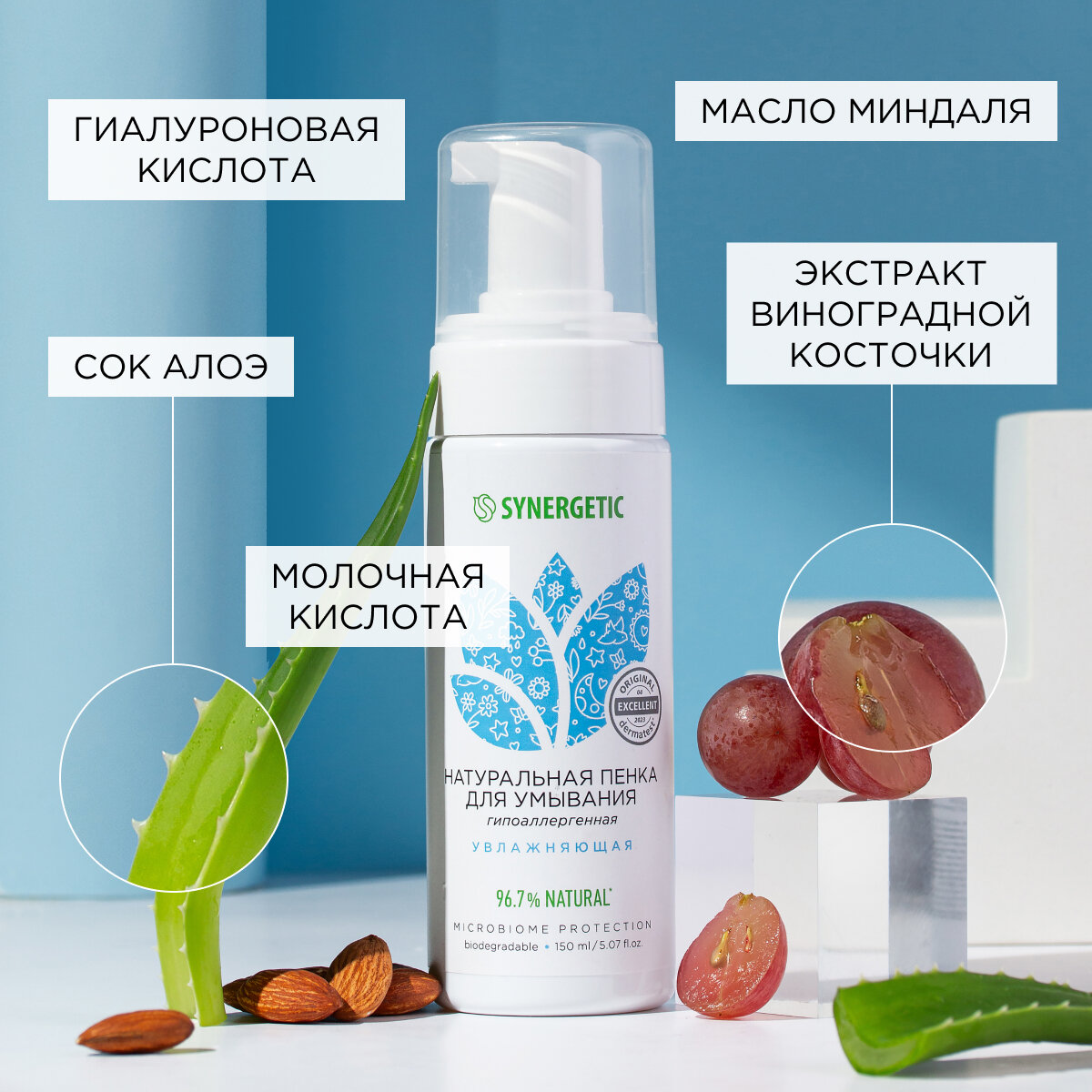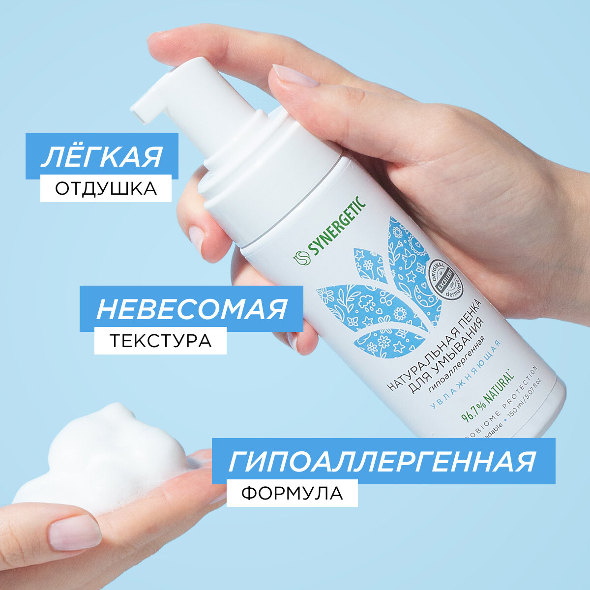 Натуральная пенка для умывания SYNERGETIC увлажняющая, 150 мл интересное: