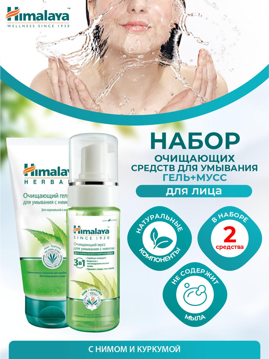 Купить Набор очищающих средств для умывания Himalaya Гель с нимом 150 мл. + Мусс с нимом 150 мл.