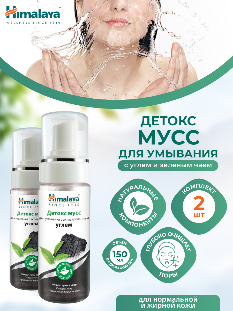 Himalaya herbalsмусс для умывания детокс с активированным углем, 150 мл,2 шт
