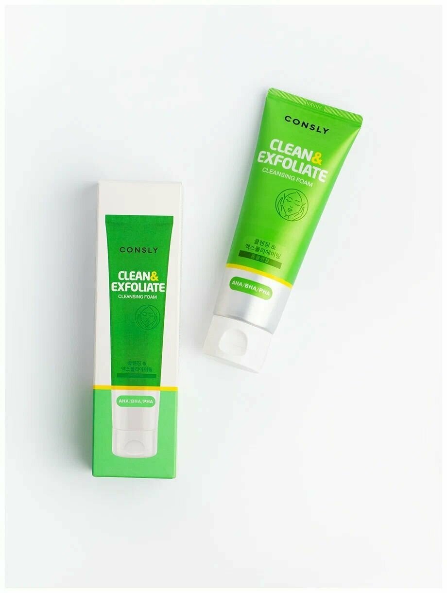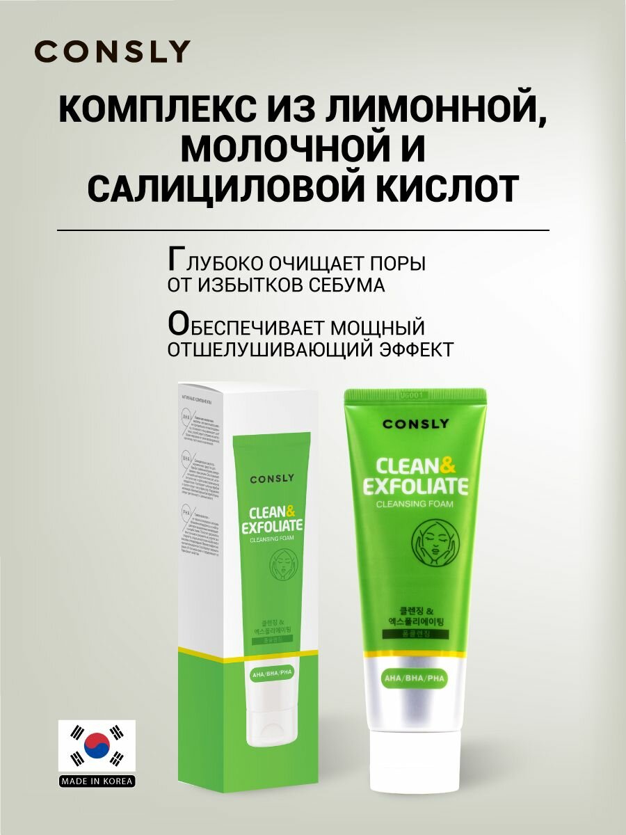 Consly Пенка для умывания с AHA, BHA, PHA кислотами - Cleansing foam clean&exfoliate, 120мл