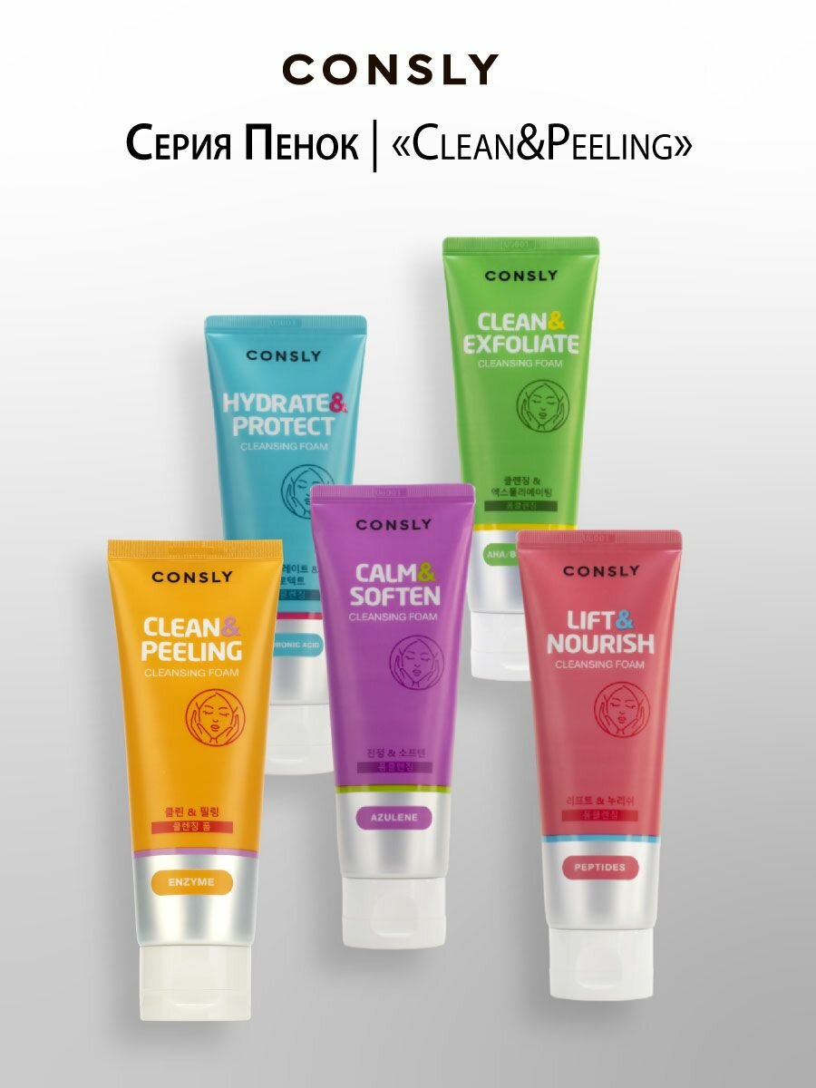 Купить CONSLY Пенка для умывания лица Корея очищающая для снятия макияжа (остатков) и удаления себума. Отшелушивающая пенка с кислотами AHA, BHA, PHA Cleansing Foam Clean&Exfoliate уходовая косметика 120мл