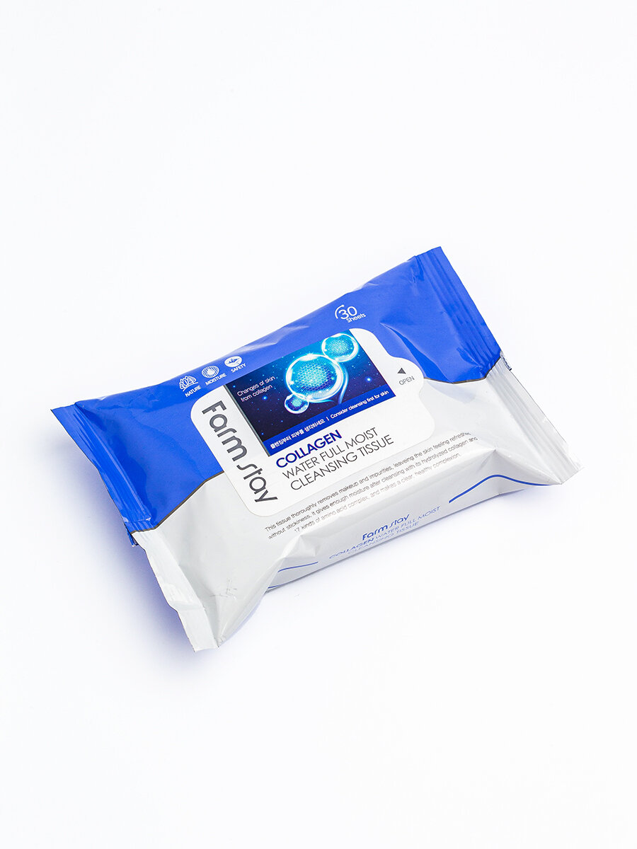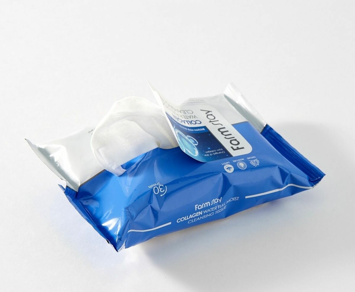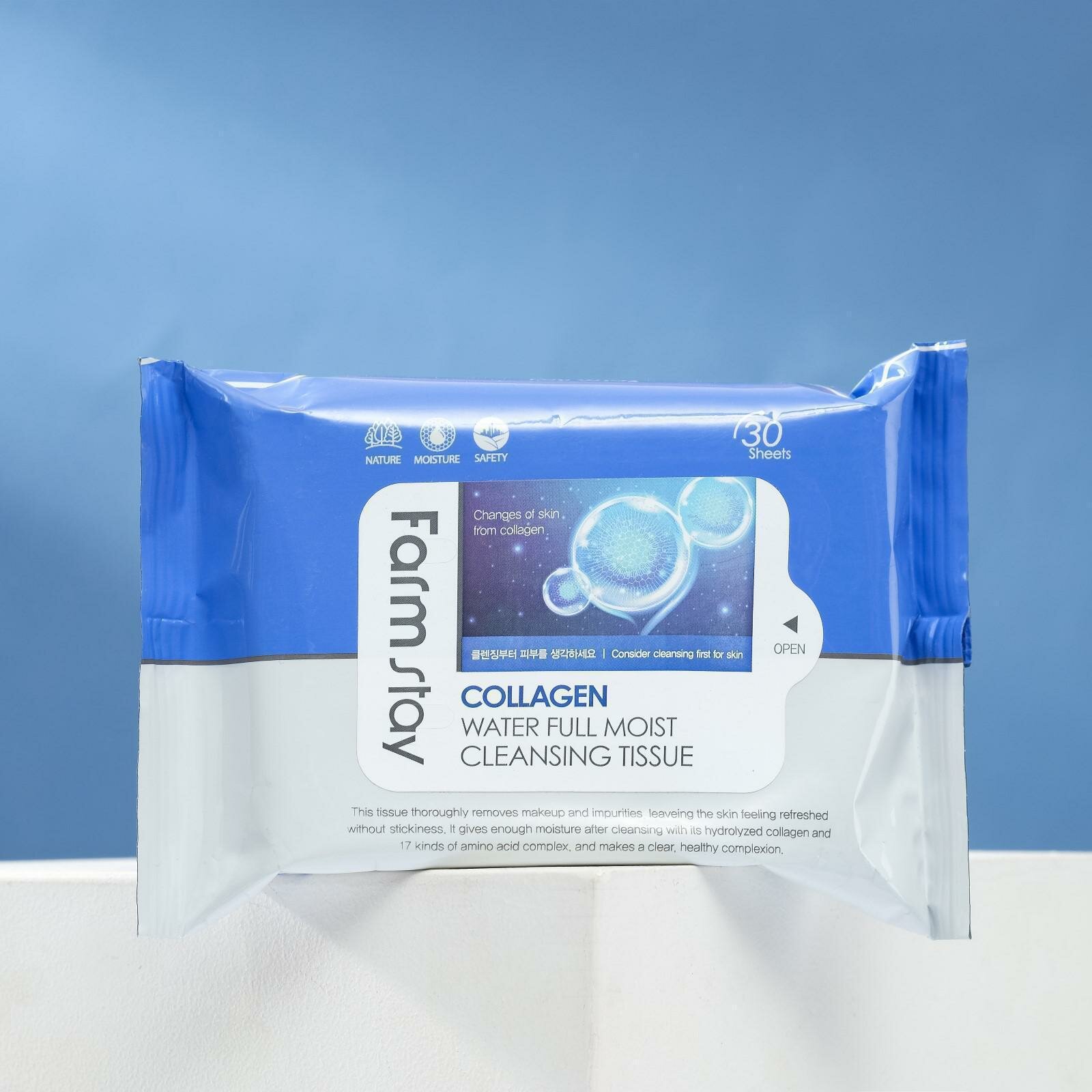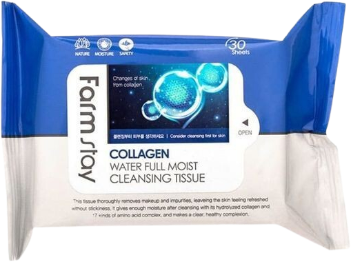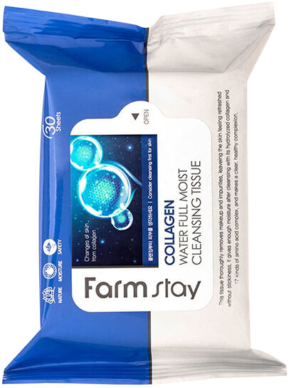 Купить FarmStay Collagen Water Full Moist Cleansing Tissue Очищающие увлажняющие салфетки для снятия макияжа, 30 шт, Корея