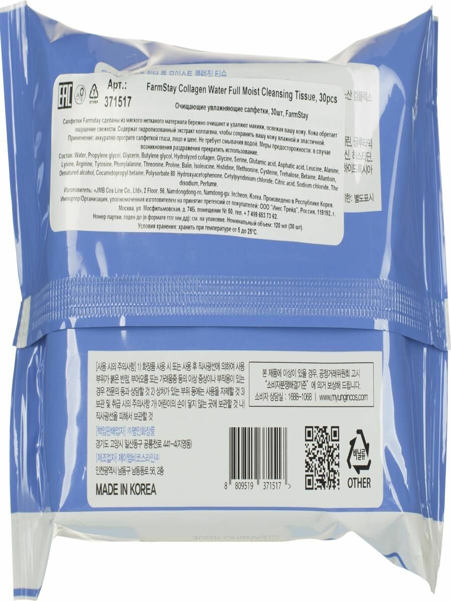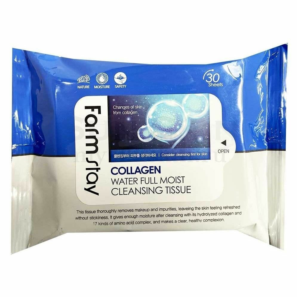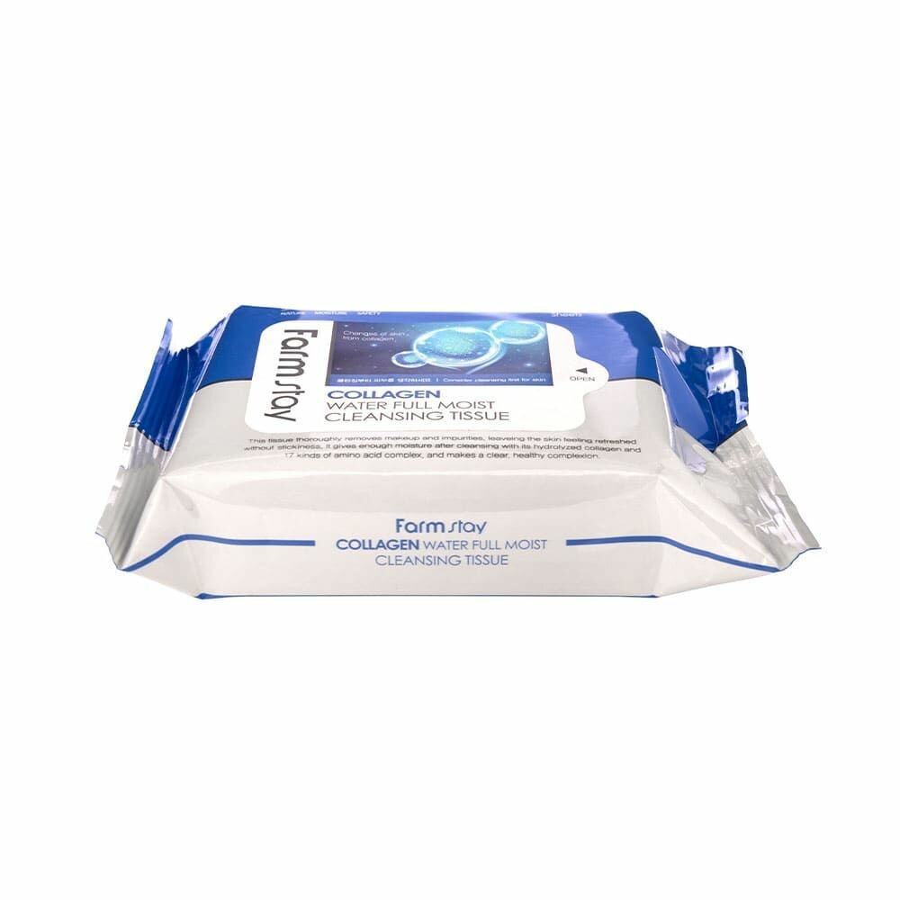 Купить FarmStay Collagen Water Full Moist Cleansing Tissue Очищающие увлажняющие салфетки для снятия макияжа, 30 шт, Корея