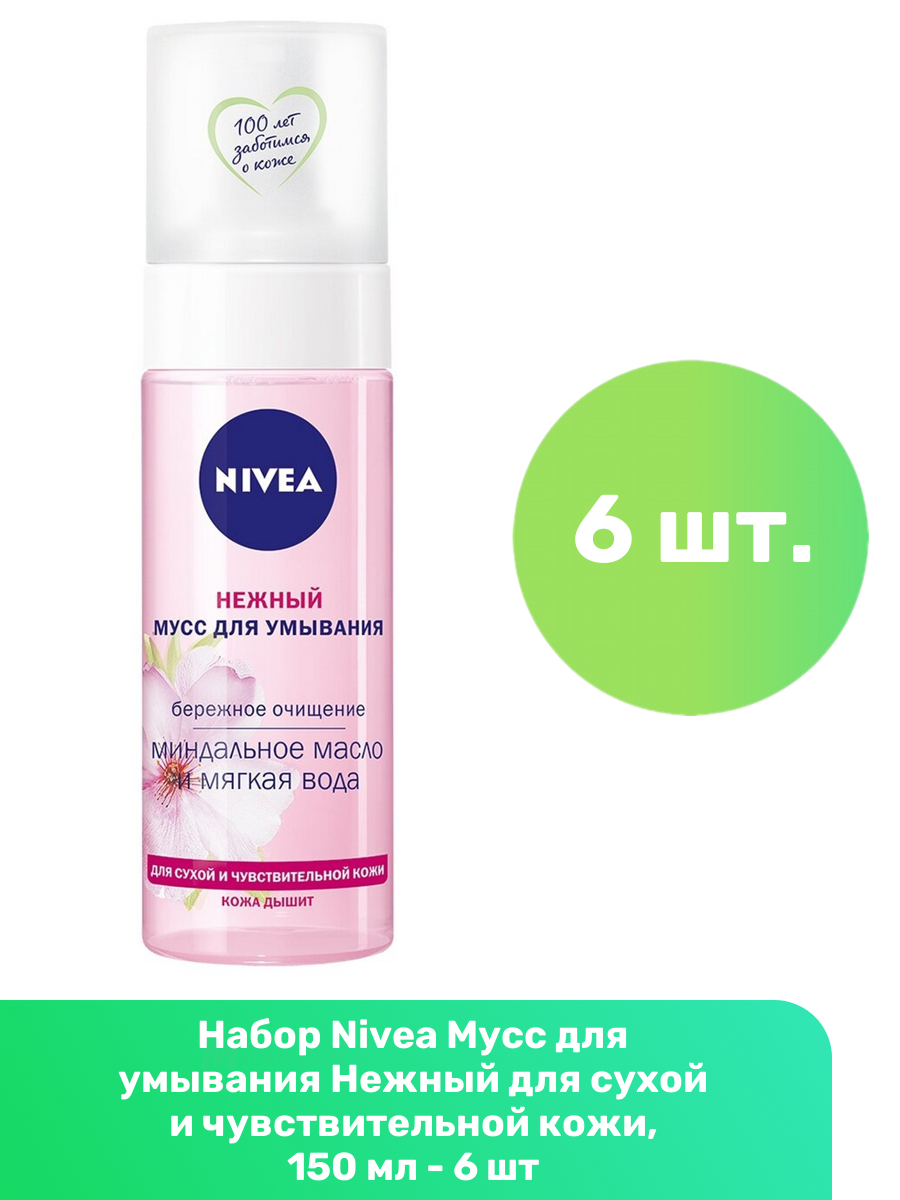 Купить Nivea Мусс для умывания для сухой и чувствительной кожи нежный, 150 мл, 6 шт