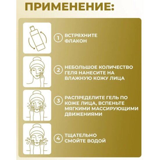 | Способ применения | Перед применением встряхнуть флакон, нанести гель на влажную кожу лица, вспенить, смыть водой. |
