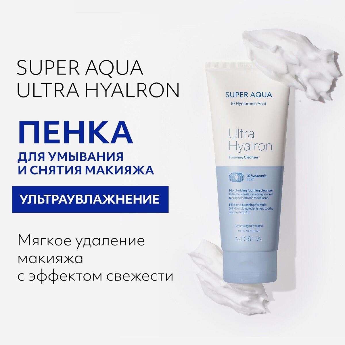 Купить Пенка MISSHA Super Aqua Ultra Hyalron для умывания и снятия макияжа, 200 мл