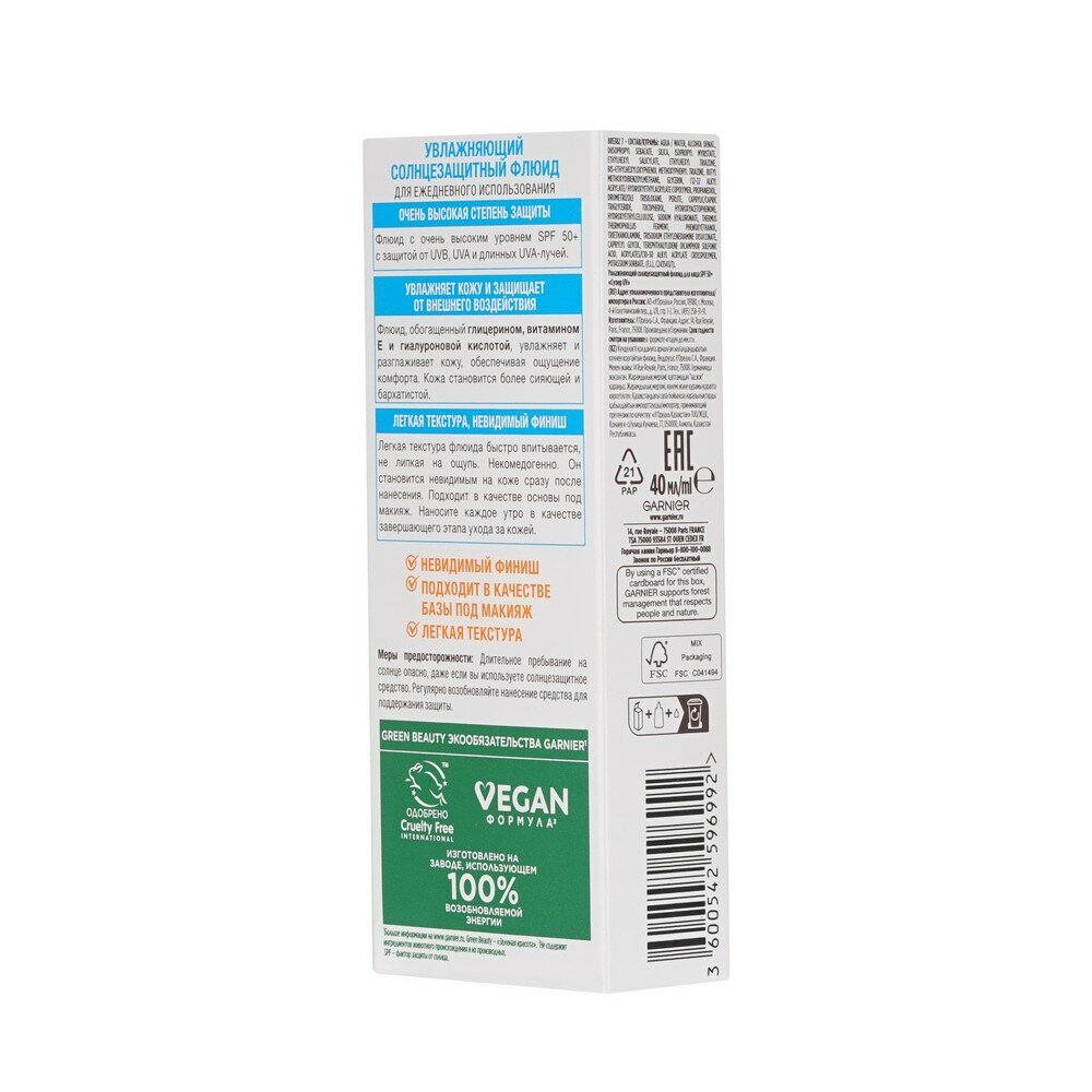 Купить Garnier Амбре Солер солнцезащитный флюид для лица с гиалуроновой кислотой СПФ 50, 40 мл