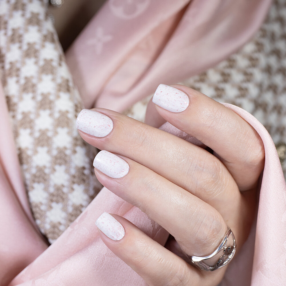 Лак для ногтей Лепестки Сакуры, молочный белый с поталью, 11 мл