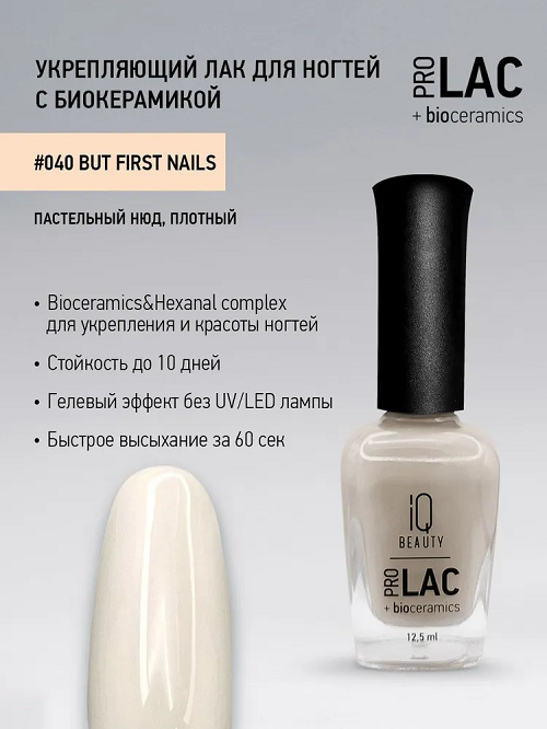 Лак для ногтей IQ Beauty PROLAC+bioceramics укрепляющий 040 But First Nails, 12.5 мл