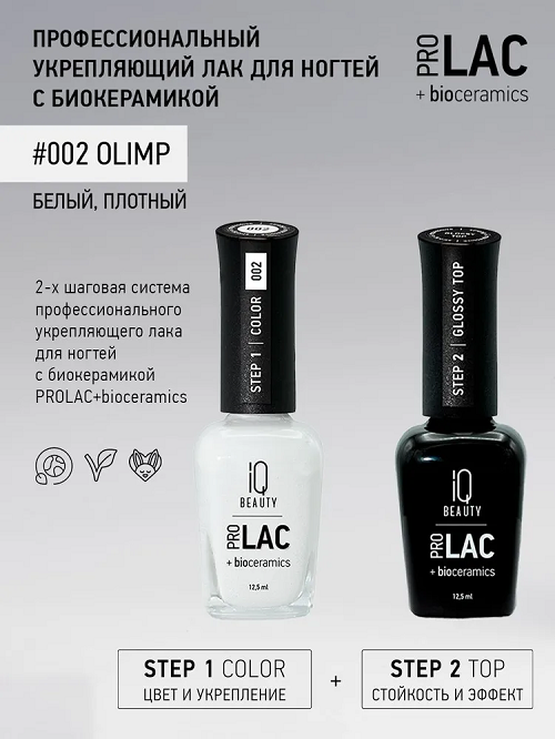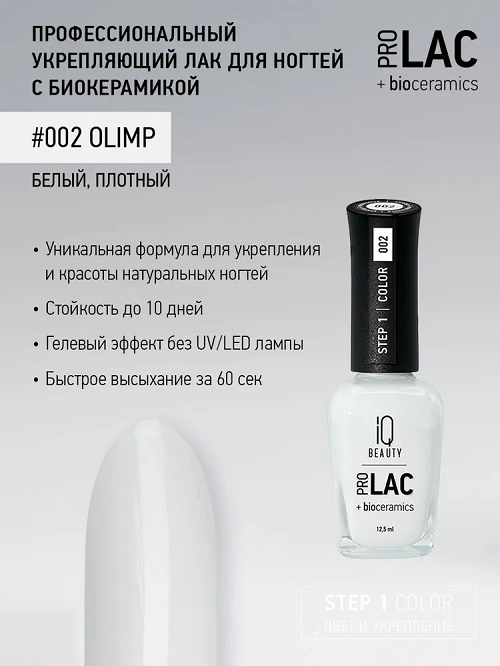 Купить IQ Beauty №002 Olimp - Айкью Бьюти Лак для ногтей профессиональный укрепляющий с биокерамикой №002 (белый), 12,5 мл -