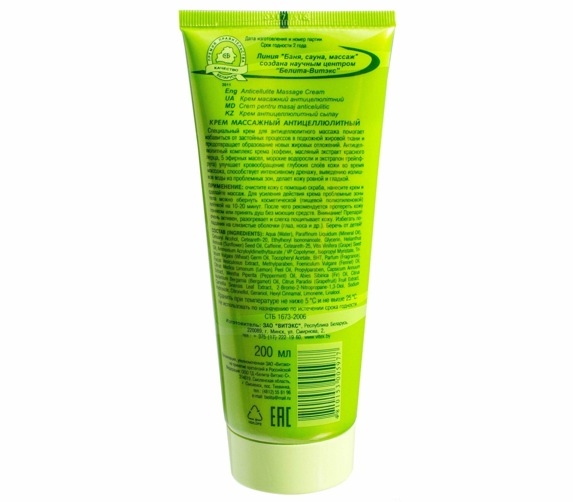 Массажный крем Белита-Витекс "Баня, массаж, сауна", антицеллюлитный, 200 мл