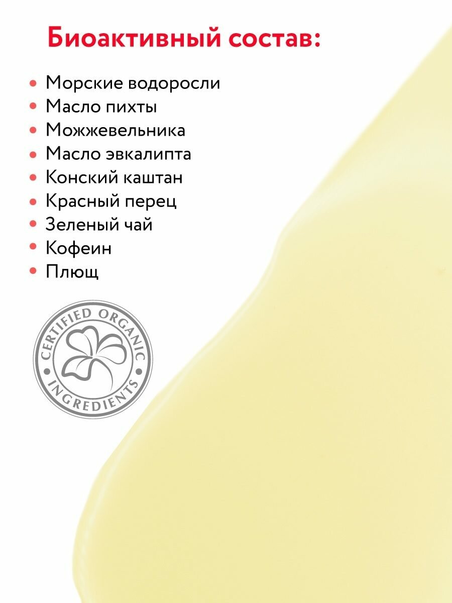 | Активные ингредиенты | глицерин, кофеин, красный перец, морские водоросли |