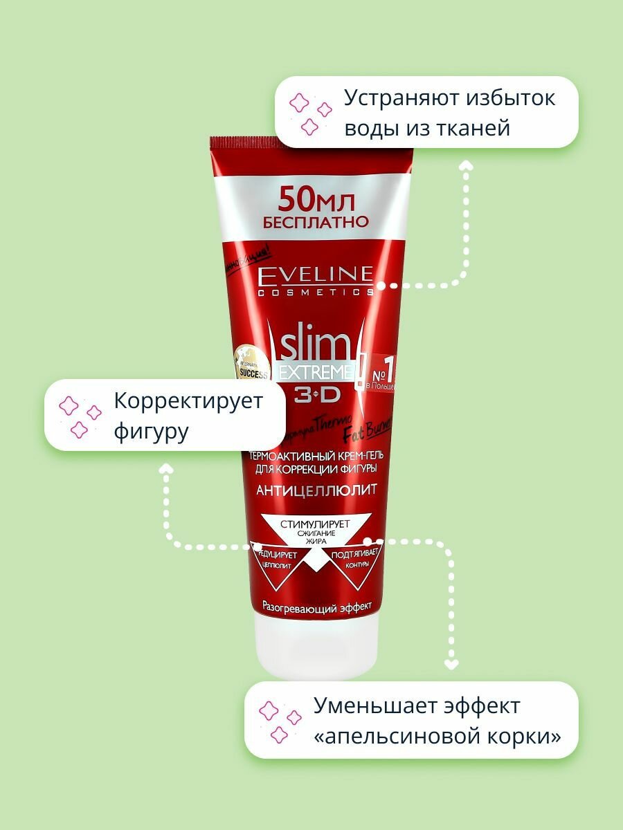 Крем-гель Eveline "Slim Extreme", 3D, термоактивный, для коррекции фигуры, антицеллюлит, 250 мл