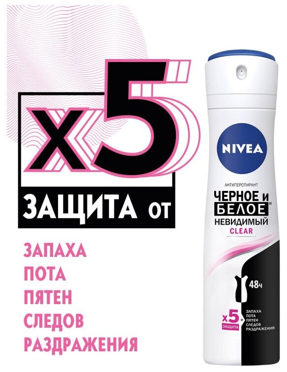 Nivea Дезодорант-антиперспирант спрей женский Чёрное и белое Невидимый Clear, 150 мл - 1 шт