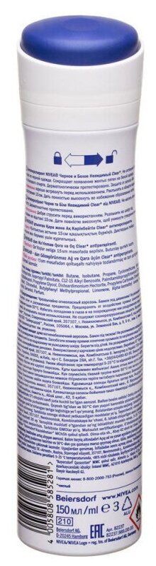 Антиперспирант спрей черное и белое невидимый Clear Deo Nivea/Нивея 150мл (82237)