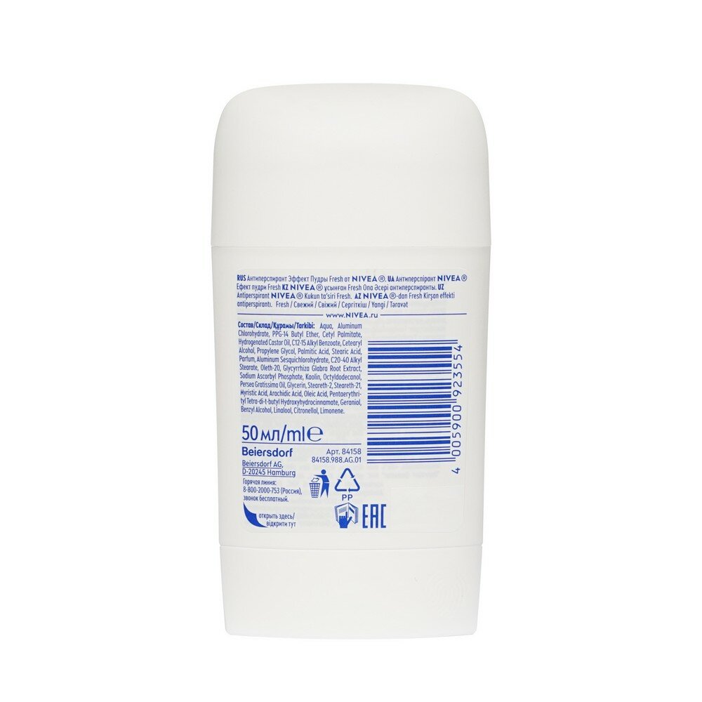 Nivea Антиперспирант Эффект пудры Fresh, стик, 50 мл, 90 г, 1 шт.