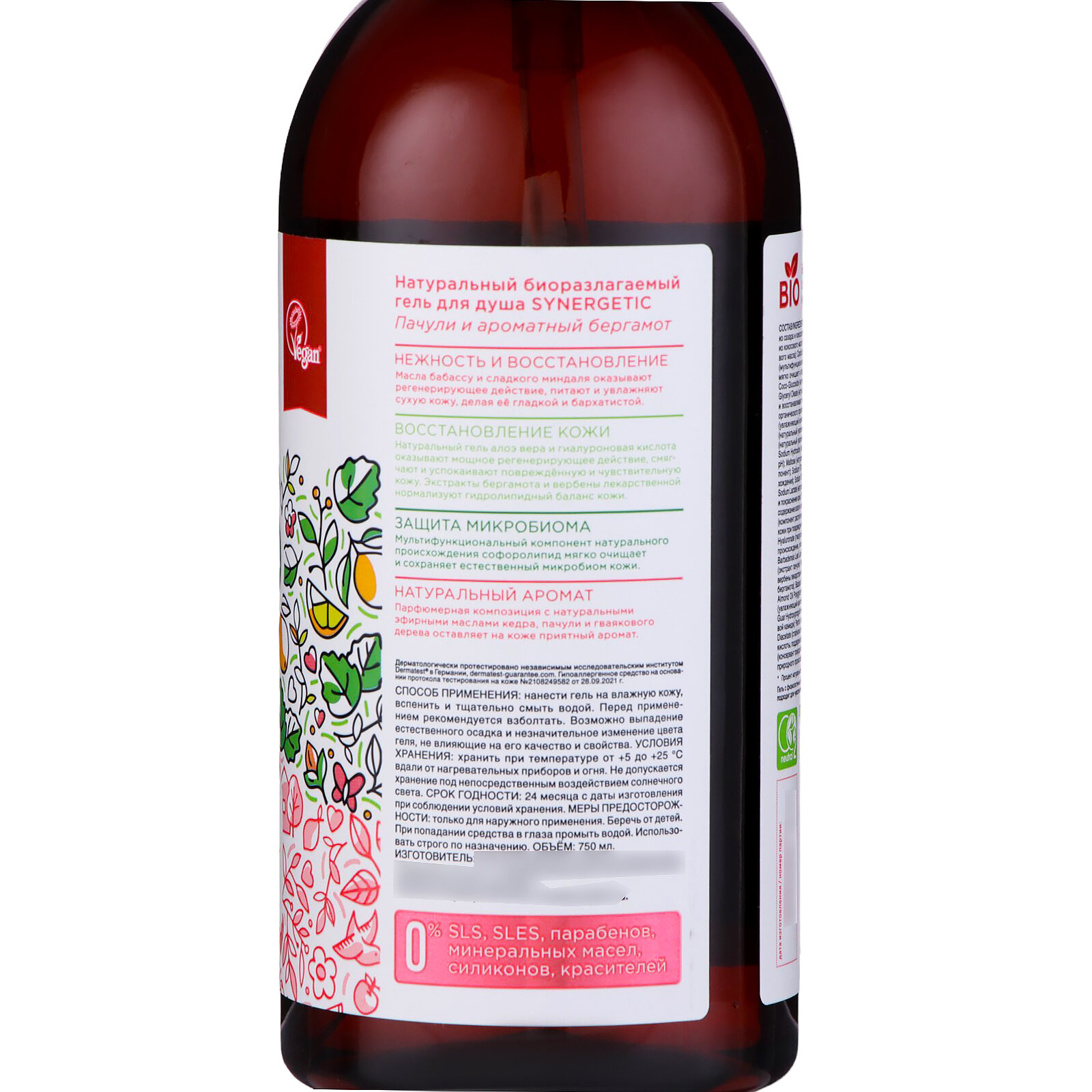 Гель для душа Synergetic Пачули и ароматный бергамот, 750 мл