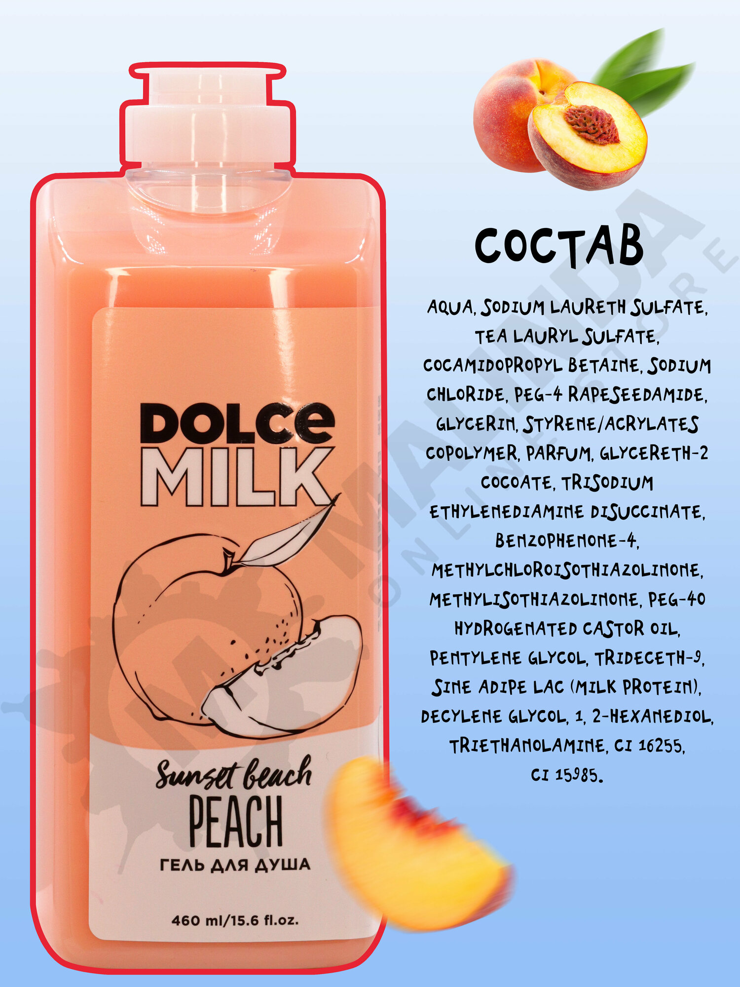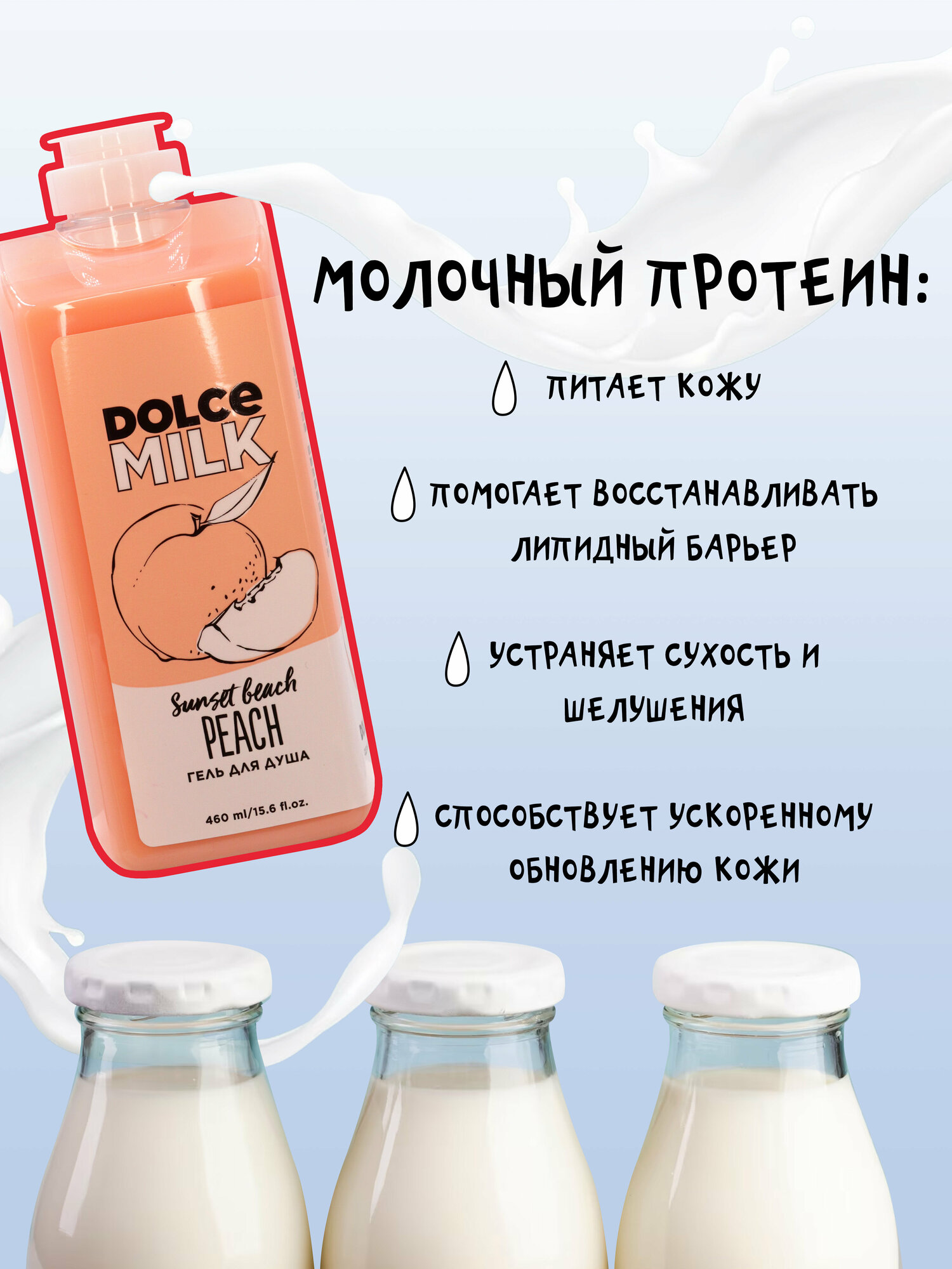 DOLCE MILK - дольче милк Гель для душа Персик на пляже. Увлажняющий гель - косметика Лэтуаль 460 мл