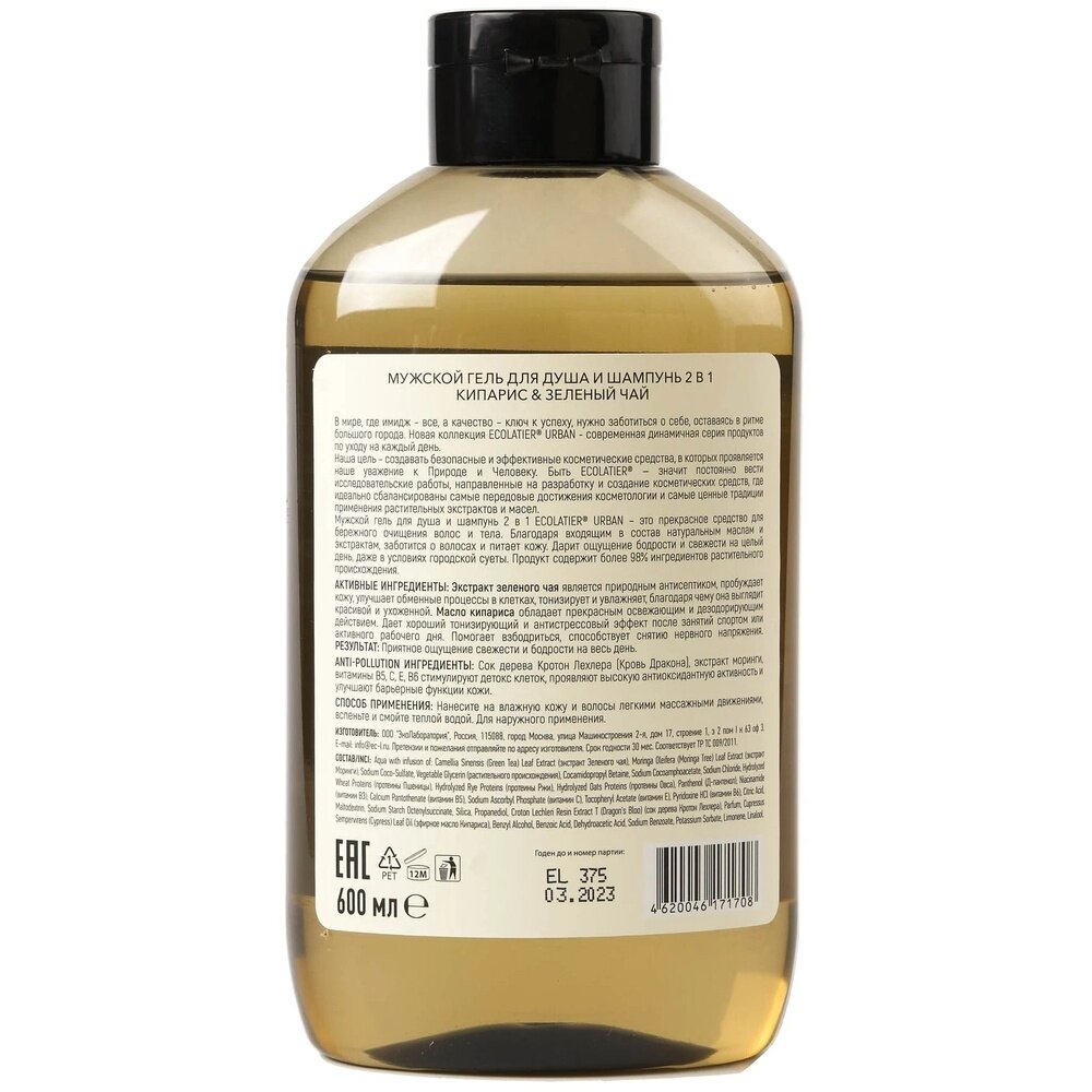 Купить Ecolatier Urban Мужской гель для душа и шампунь 2 в 1 кипарис и зеленый чай 600 мл
