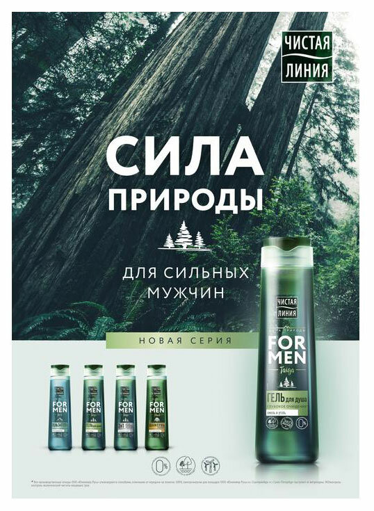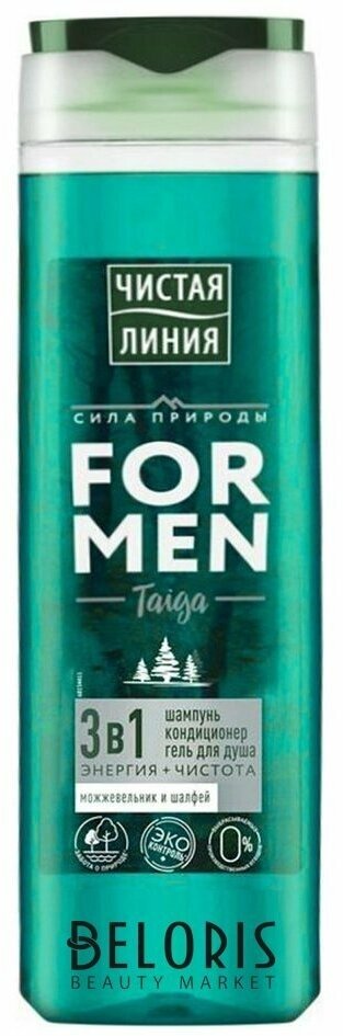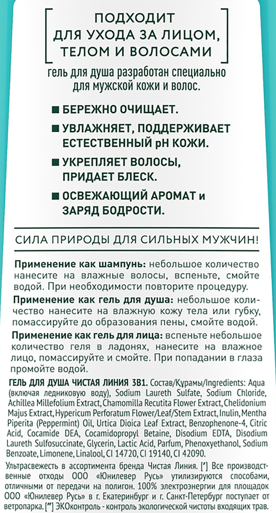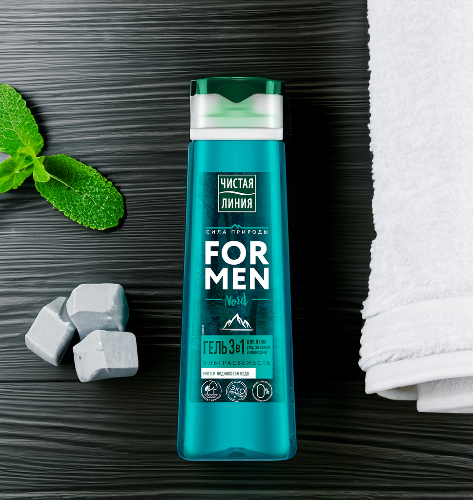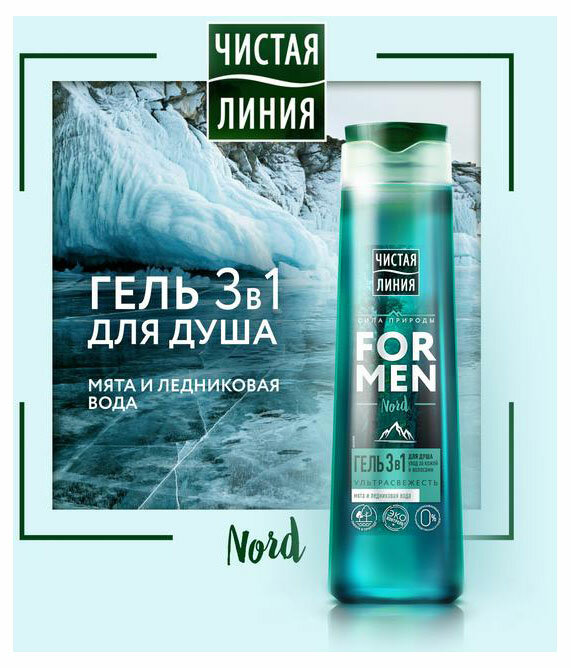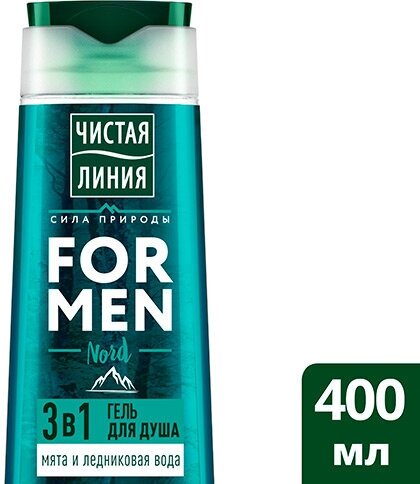 Шампунь гель для душа и умывания мужской 3 в 1 Чистая Линия Ультрасвежесть мята и ледниковая вода, 400 мл