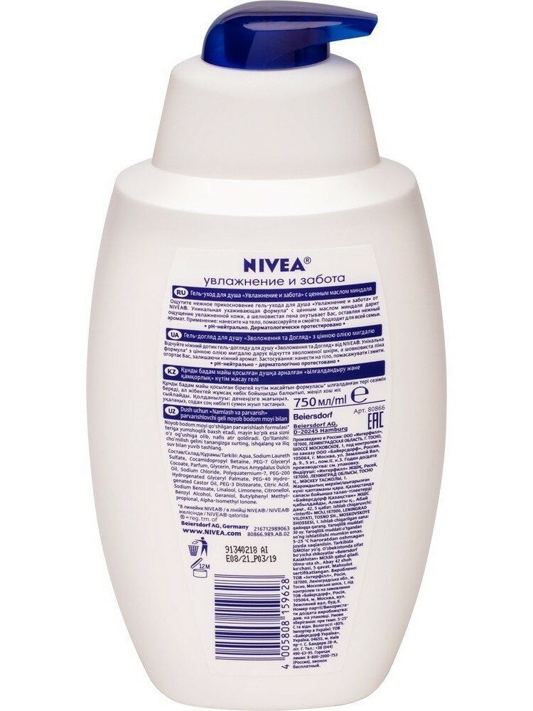 NIVEA Гель-уход для душа Увлажнение и забота 750 мл