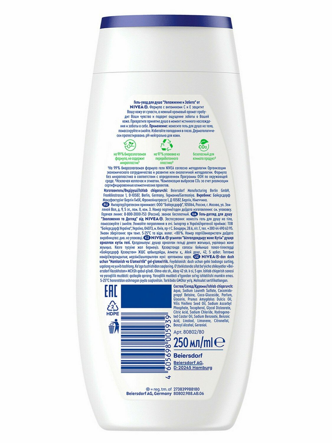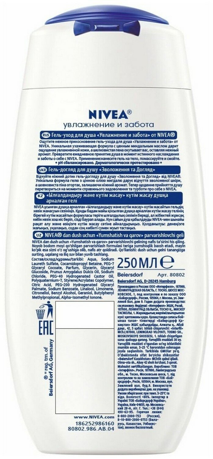NIVEA Гель-уход для душа "Увлажнение и забота" 250мл4 6854 685
