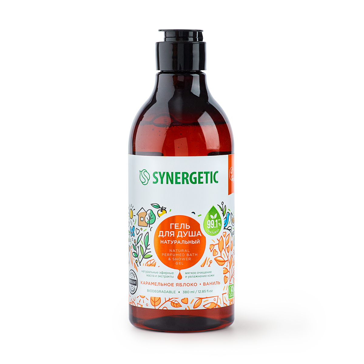Гель для душа SYNERGETIC, биоразлагаемый, со вкусом карамельного яблока и ванили, 380 мл