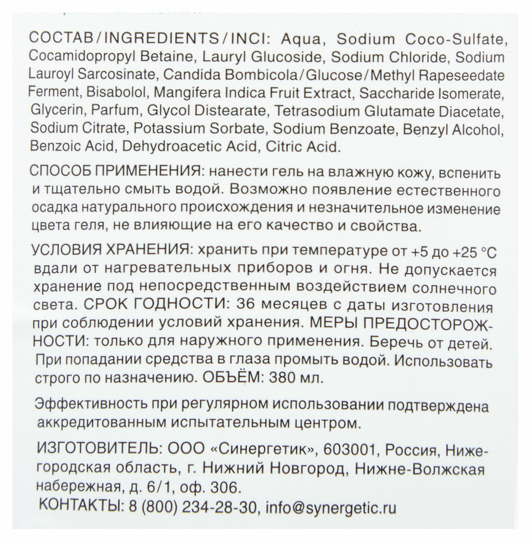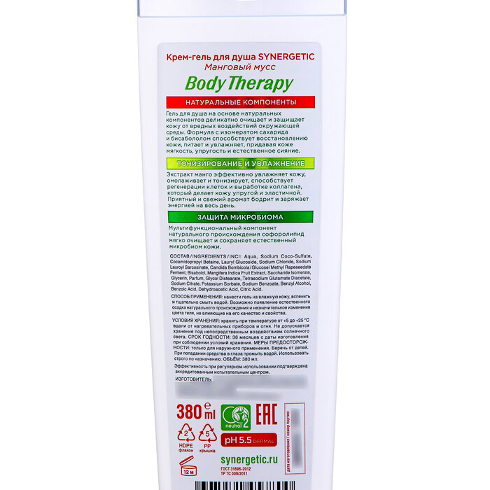 Купить Крем-гель для душа SYNERGETIC "Манговый мусс" BODY THERAPY, 380 мл