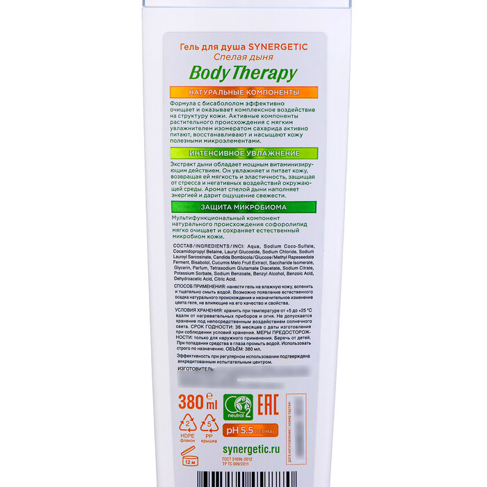 Купить Гель для душа SYNERGETIC "Спелая дыня" BODY THERAPY, 380 мл