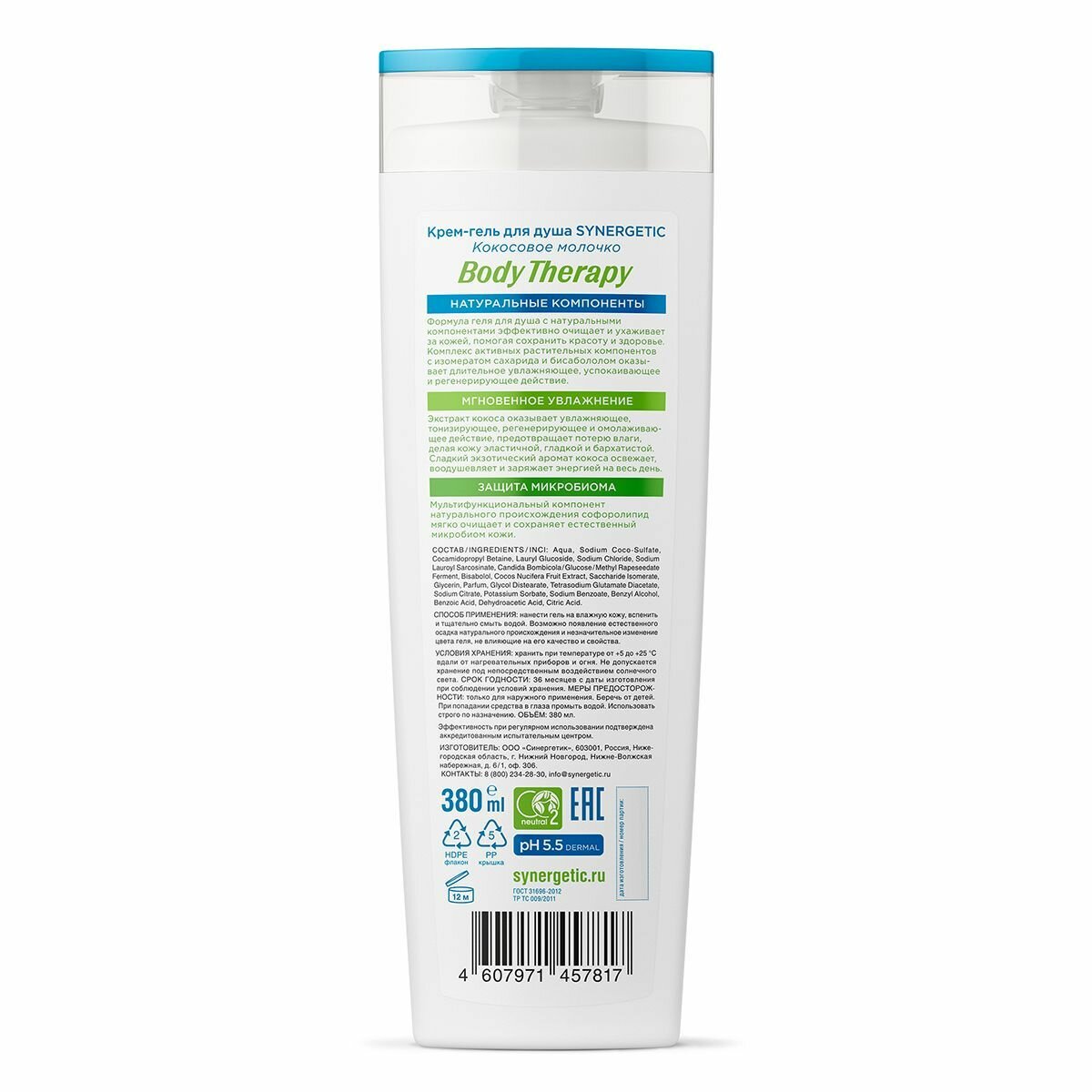Купить Крем-гель для душа SYNERGETIC "Кокосовое молочко" BODY THERAPY, 380 мл