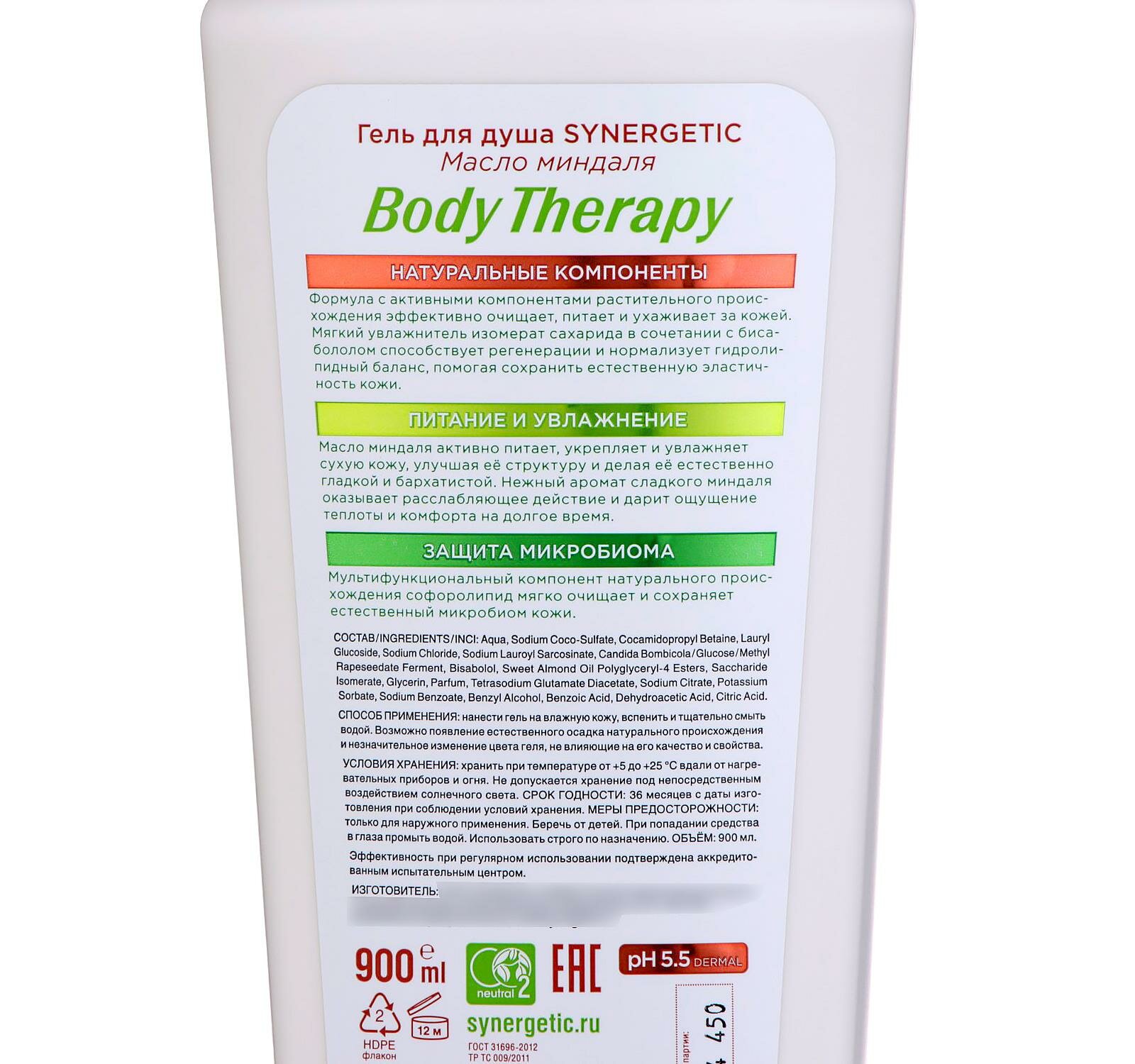 Гель для душа Synergetic Body Therapy Масло миндаля, 900 мл