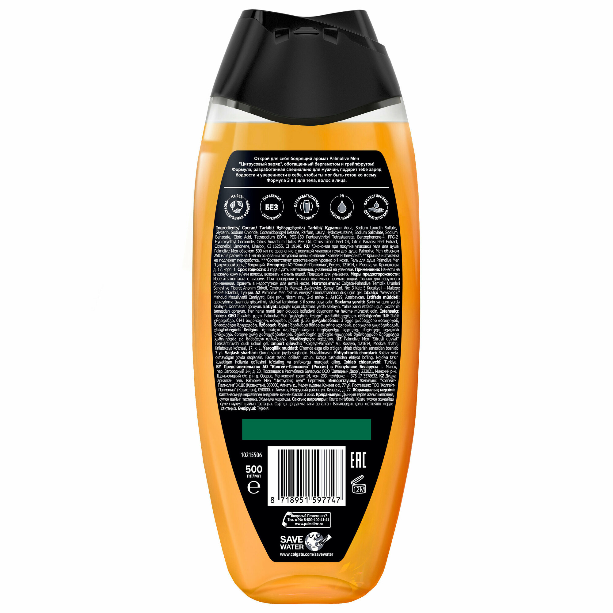Ниже Вы можете прочитать отзывы на Гель для душа мужской Palmolive MEN Бодрящий Цитрусовый Заряд 3 в 1 для тела, волос и лица, 500 мл, ознакомится с подробными характеристиками, посмотреть интересные обзоры и фотографии на Гель для душа мужской Palmolive MEN Бодрящий Цитрусовый Заряд 3 в 1 для тела, волос и лица, 500 мл.
