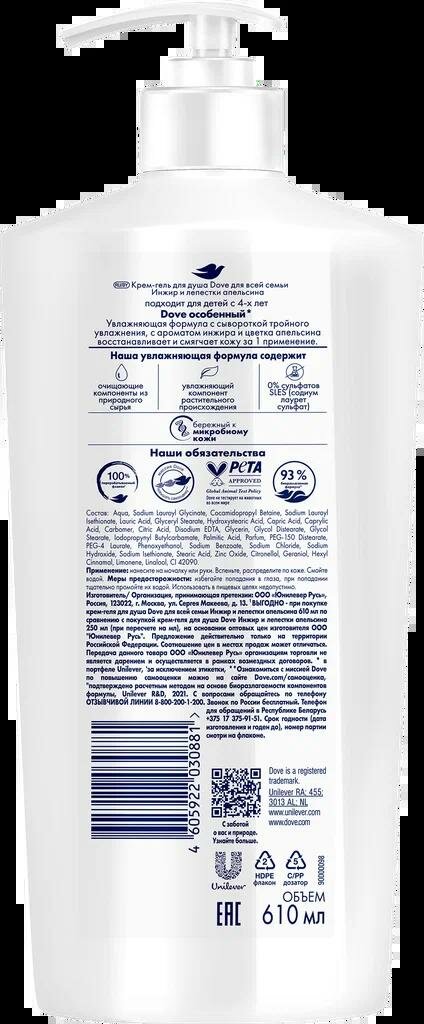 Купить DOVE инжир И лепестки апельсина крем-гель для душа для всей семьи бессульфатный с сывороткой тройного увлажнения 610 мл