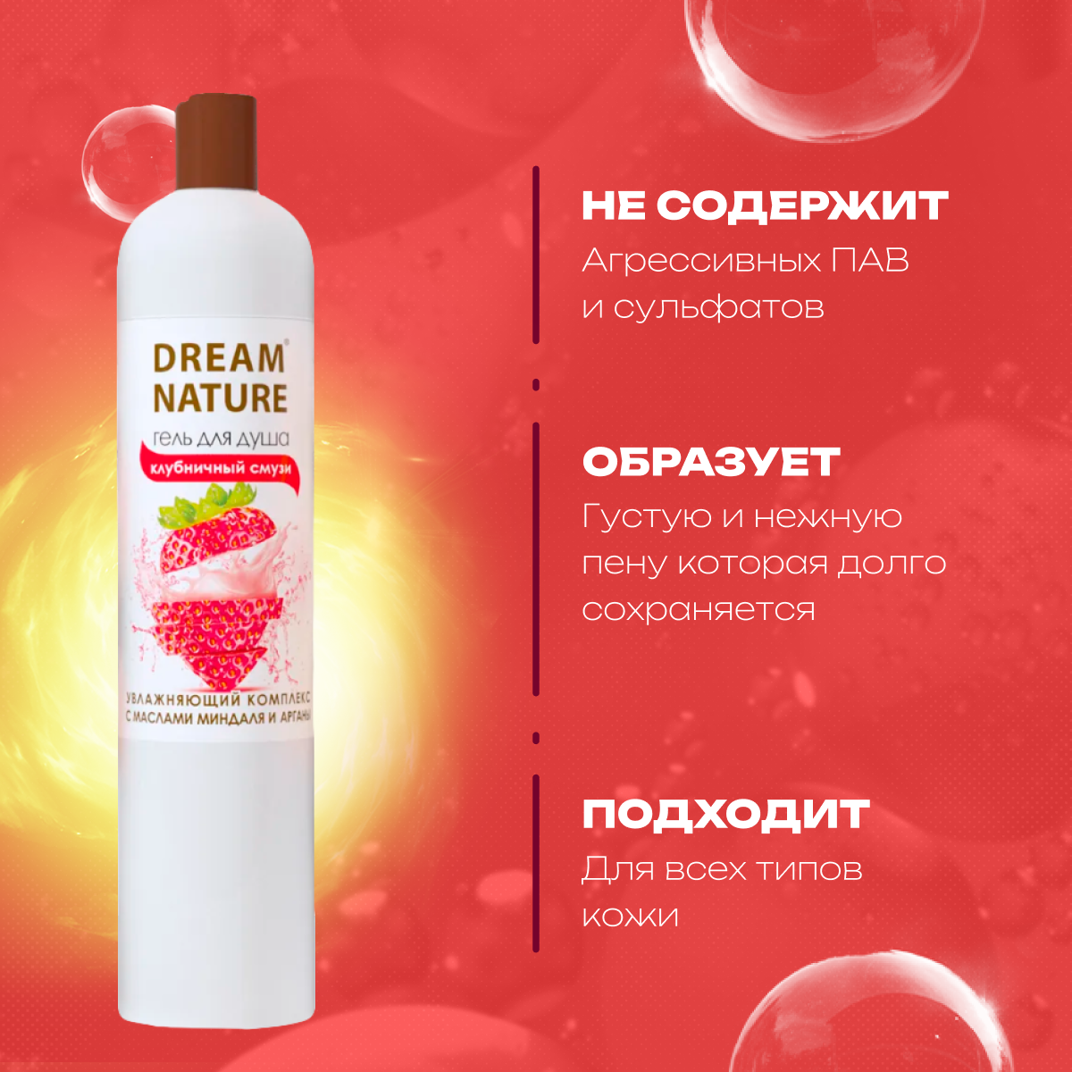Гель для душа DREAM NATURE Клубничный смузи 400 мл
