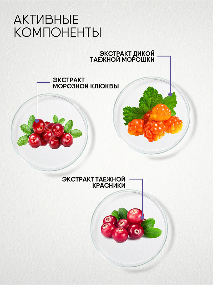 | Масла и экстракты | экстракт клюквы / экстракт малины / экстракт морошки |