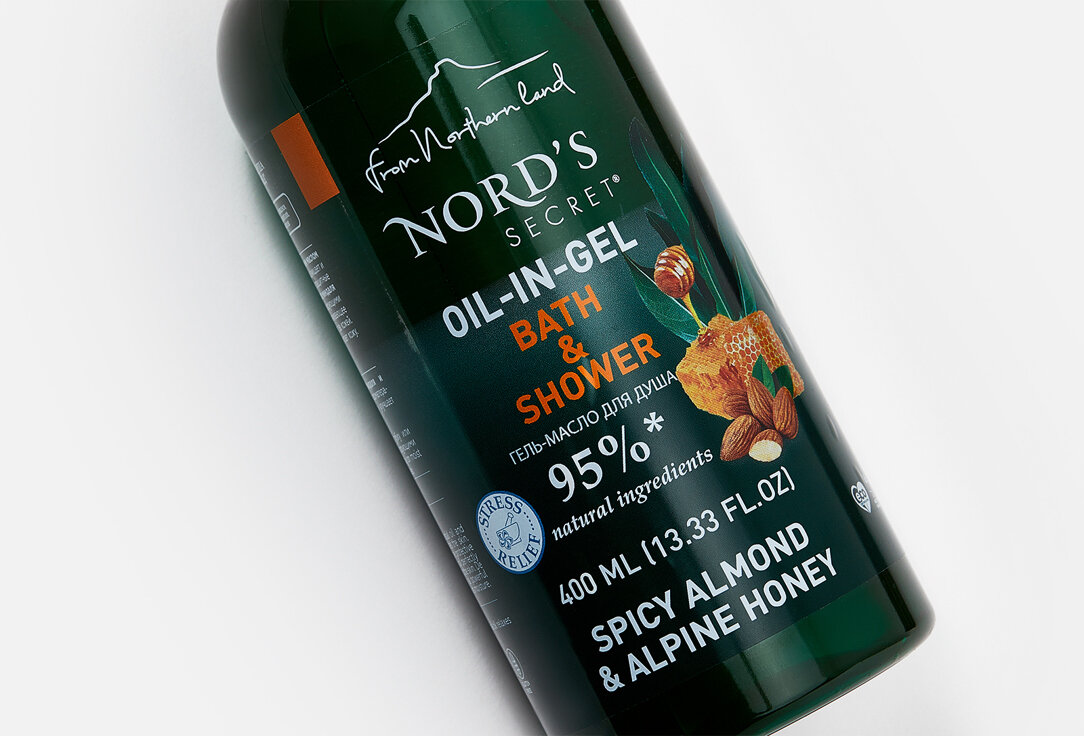 Купить NORDS SECRET Смягчающий гель масло для душа "Пряный миндаль и альпийский мед", 400 мл