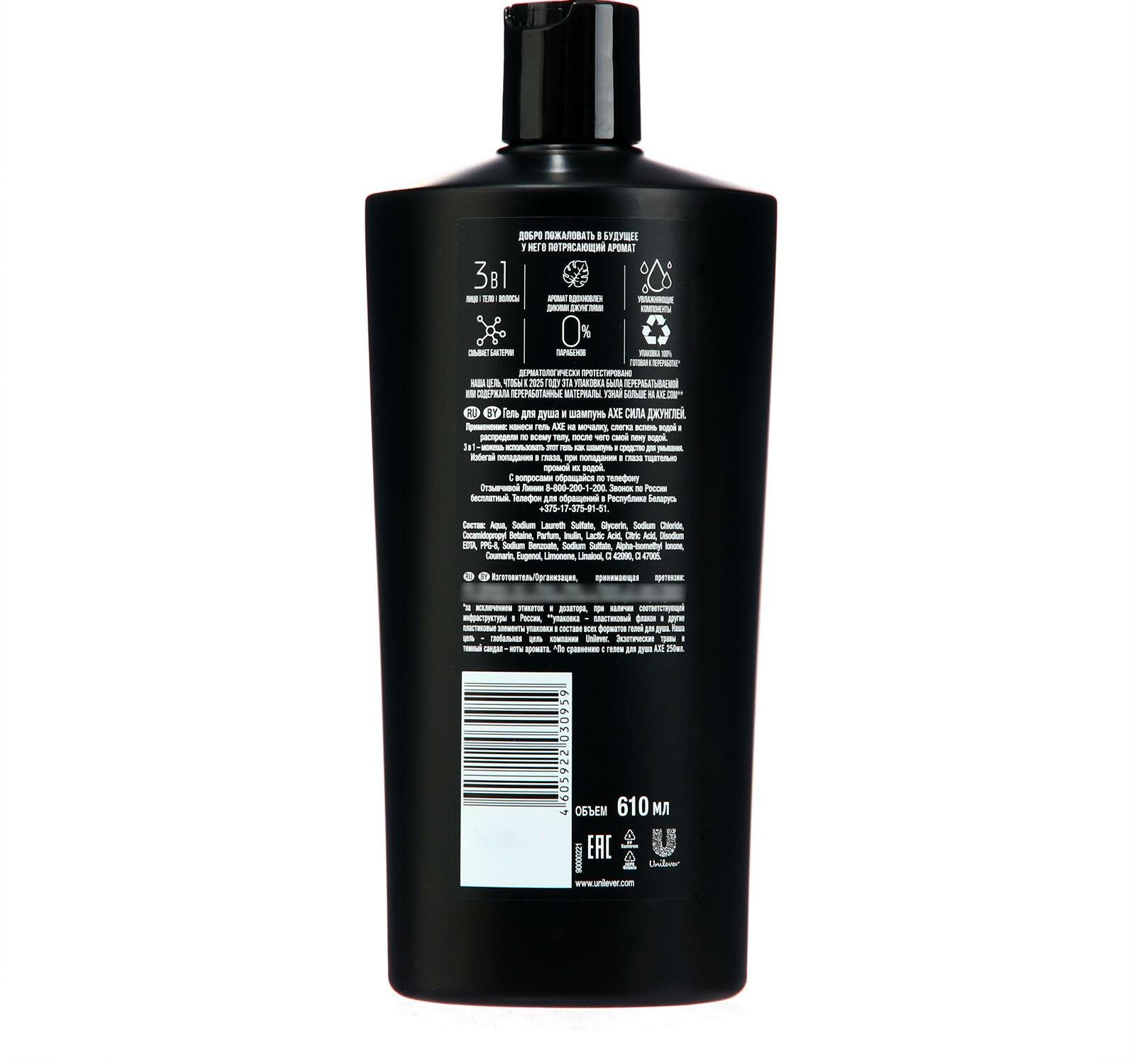 Гель для душа и шампунь Axe Сила Джунглей с пребиотиками и увлажняющими ингредиентами 610 мл