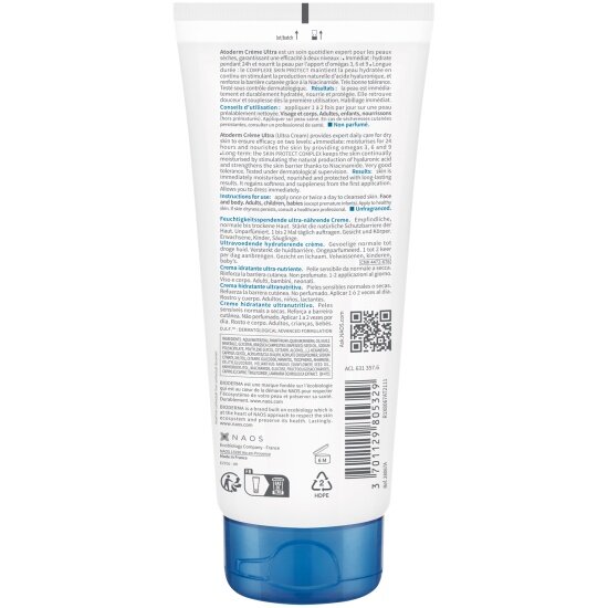 | Способ применения | Использовать утром и вечером. Наносить на предварительно очищенную кожу. Рекомендованное очищение: Атодерм гель для душа. Можно использовать для новорожденных. |