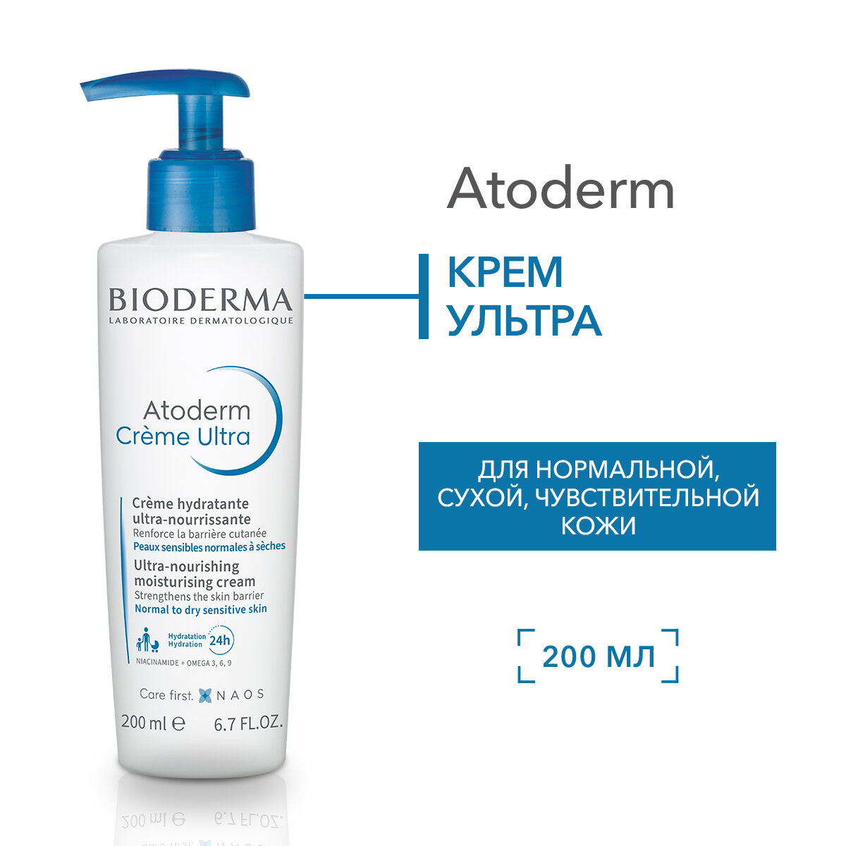 BIODERMA Atoderm Ultra Крем для увлажнения нормальной и сухой кожи лица и тела, 200 мл