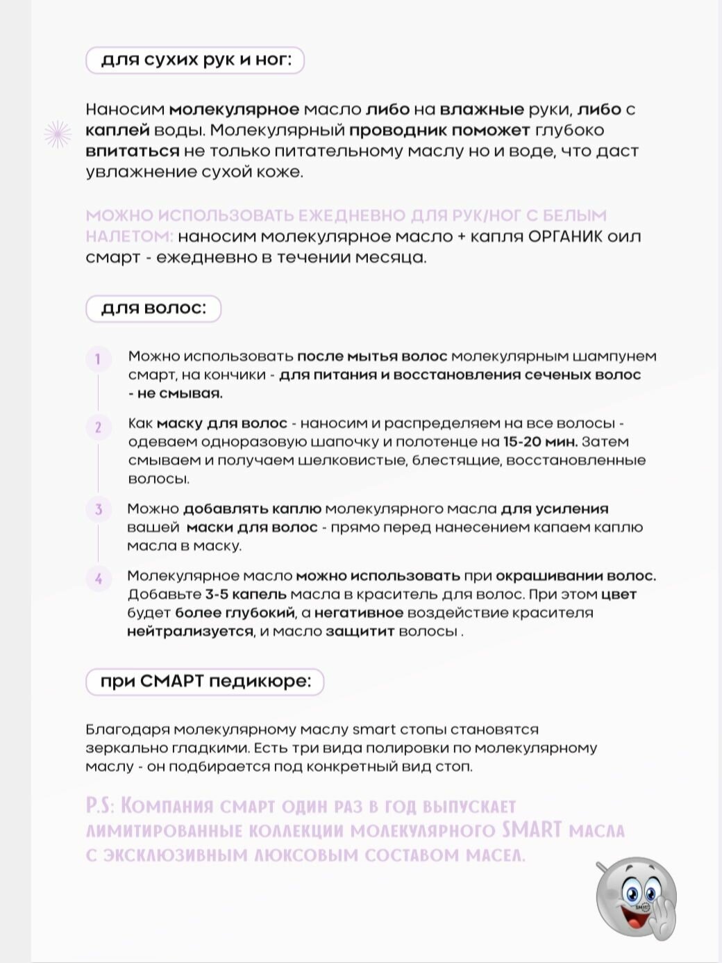 | Дополнительная информация | масло молекулярное, молекулярное масло для кожи, масло для ногтей, лечебное масло, масло для кутикулы, умное масло смарт, smart oil, organic oil, аргановое масло, чайное дерево, монарда, масло увлажняющее для ногтей и кутикулы, |
