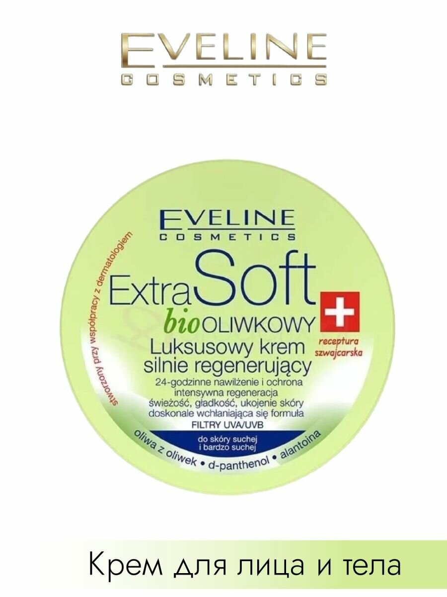 Крем для кожи лица и тела EVELINE EXTRA SOFT Bio эксклюзивный интенсивно восстанавливающий Оливки, 200 мл