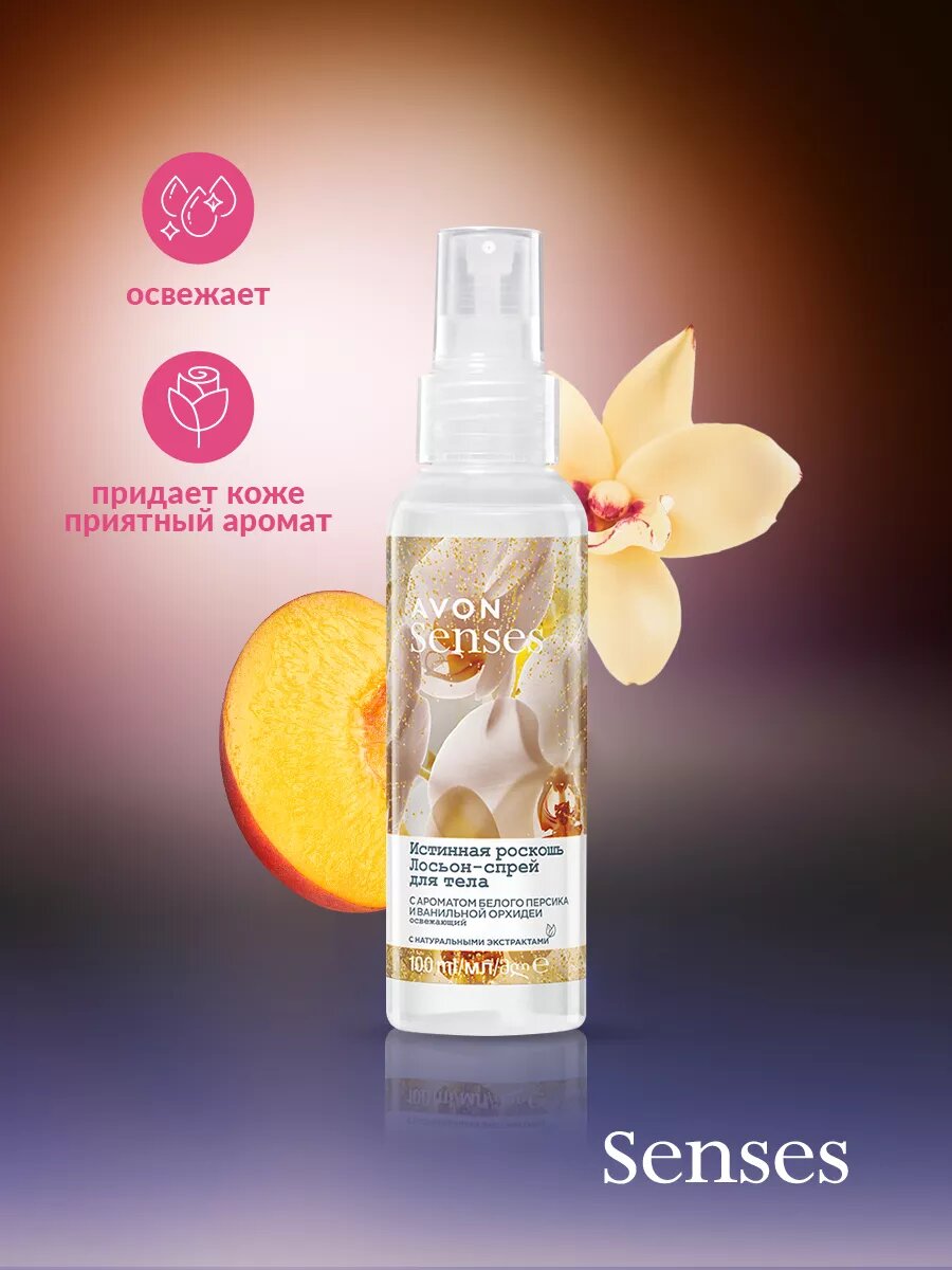 AVON Лосьон-спрей для тела Истинная роскошь, с ароматом белого персика и ванильной орхидеи, 100 мл