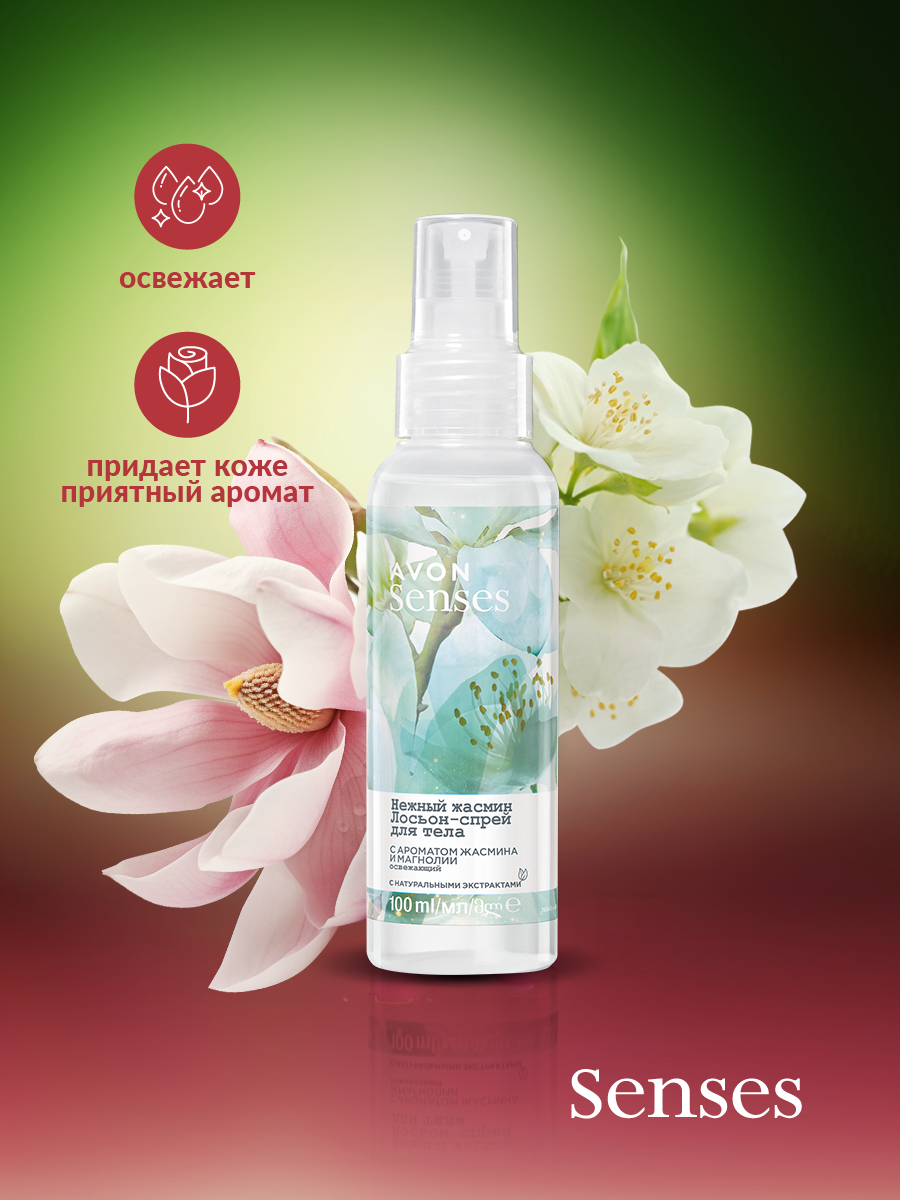 AVON Лосьон-спрей для тела Нежный жасмин, с ароматом жасмина и магнолии,100 мл